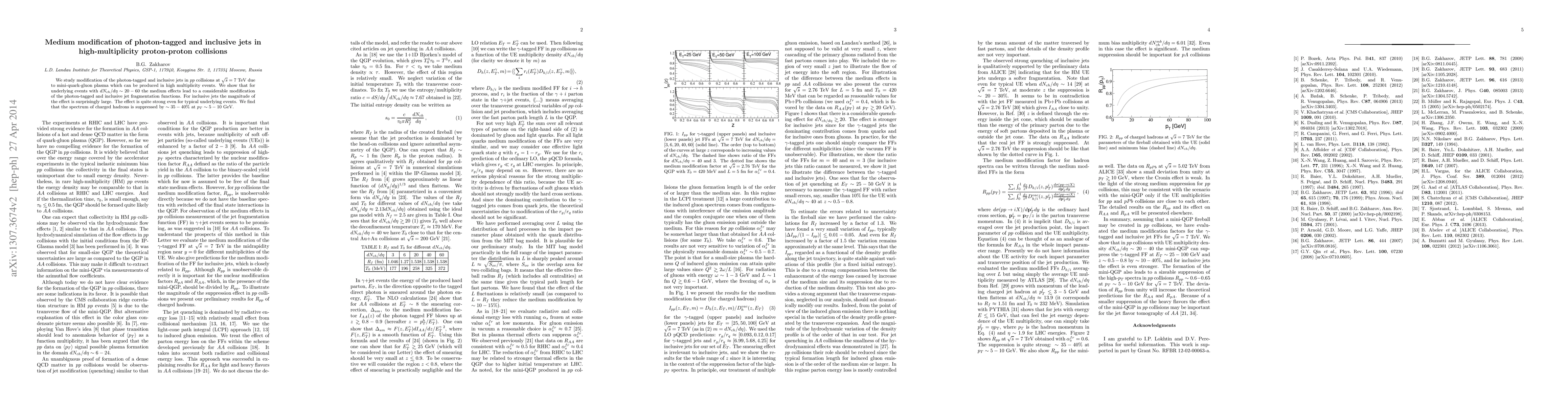 We study modification of the photon-tagged and inclusive jets in $pp$ collisions at $\sqrt{s}=7$ TeV due to mini-quark-gluon plasma which can be produced in high multiplicity events. We show that for underlying events with $dN_{ch}/d\eta\sim 20-60$ the medium effects lead to a considerable modification of the photon-tagged and inclusive jet fragmentation functions. For inclusive jets the magnitude of the effect is surprisingly large. The effect is quite strong even for typical underlying events. We find that at $\sqrt{s}=7$ TeV the spectrum of charged hadrons is suppressed by $\sim 35-40$ % at $p_{T}\sim 5-10$ GeV.