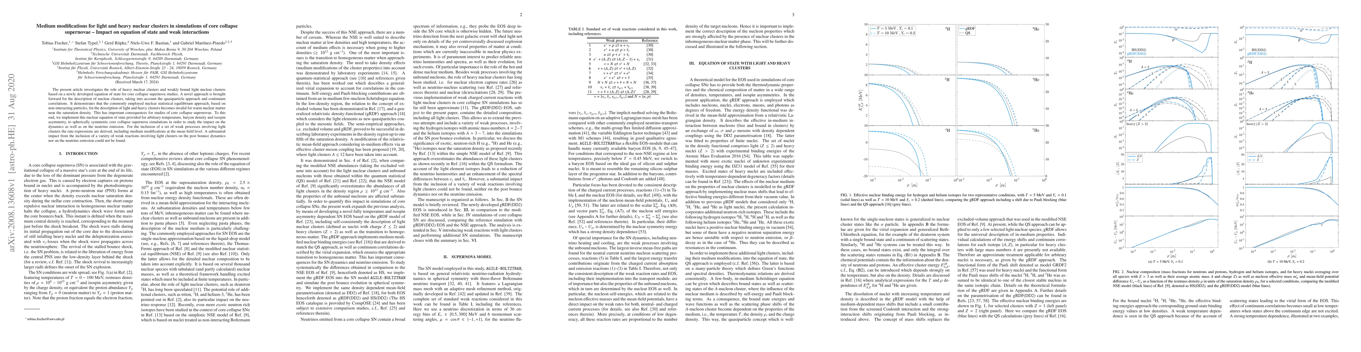 The present article investigates the role of heavy nuclear clusters and weakly bound light nuclear clusters based on a newly developed equation of state for core collapse supernova studies. A novel approach is brought forward for the description of nuclear clusters, taking into account the quasiparticle approach and continuum correlations. It demonstrates that the commonly employed nuclear statistical equilibrium approach, based on non-interacting particles, for the description of light and heavy clusters becomes invalid for warm nuclear matter near the saturation density. This has important consequences for studies of core collapse supernovae. To this end, we implement this nuclear equation of state provided for arbitrary temperature, baryon density and isospin asymmetry, to spherically symmetric core collapse supernova simulations in order to study the impact on the dynamics as well as on the neutrino emission. For the inclusion of a set of weak processes involving light clusters the rate expressions are derived, including medium modifications at the mean field level. A substantial impact from the inclusion of a variety of weak reactions involving light clusters on the post bounce dynamics nor on the neutrino emission could not be found.