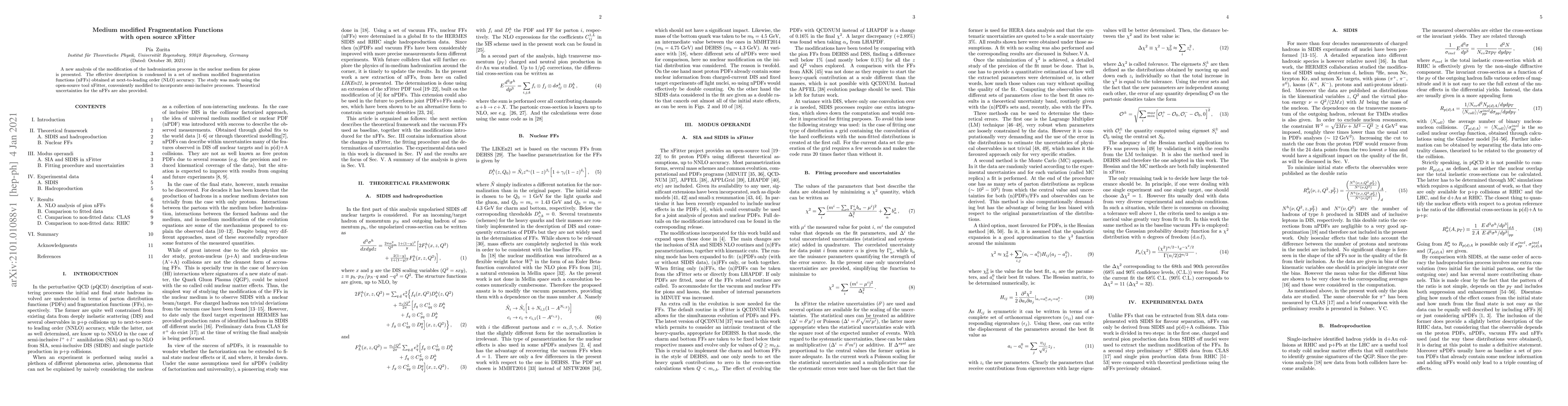 This paper presents a new analysis of pion hadronization modifications in nuclear medium using next-to-leading order accuracy, encapsulated in medium modified fragmentation functions (nFFs). The study employs the open-source tool xFitter, adapted for semi-inclusive processes, and provides theoretical uncertainties for the nFFs.