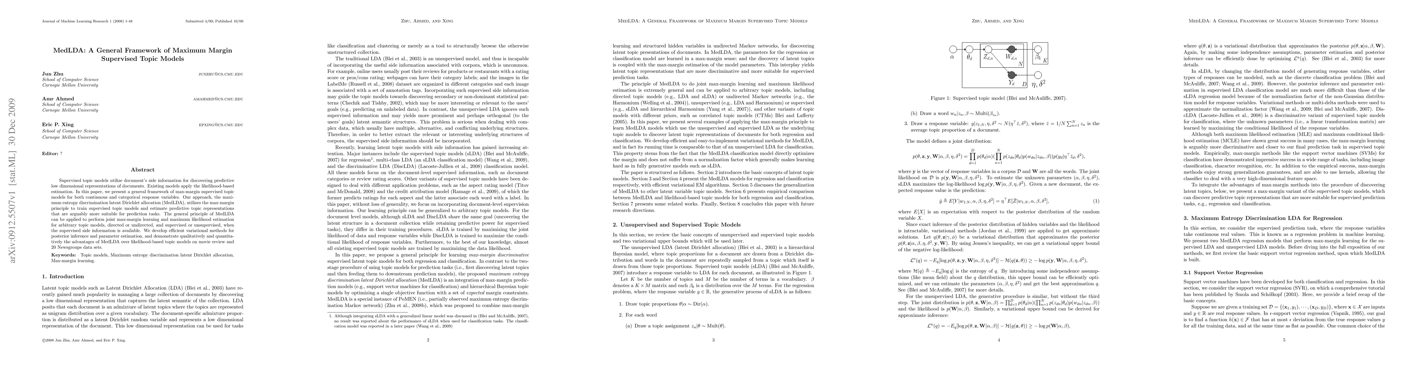 MedLDA introduces a max-margin framework for supervised topic models, enhancing predictive capabilities over traditional likelihood-based methods. It effectively combines max-margin learning with variational inference for efficient parameter estimation, showing superior performance on movie review and 20 Newsgroups datasets.