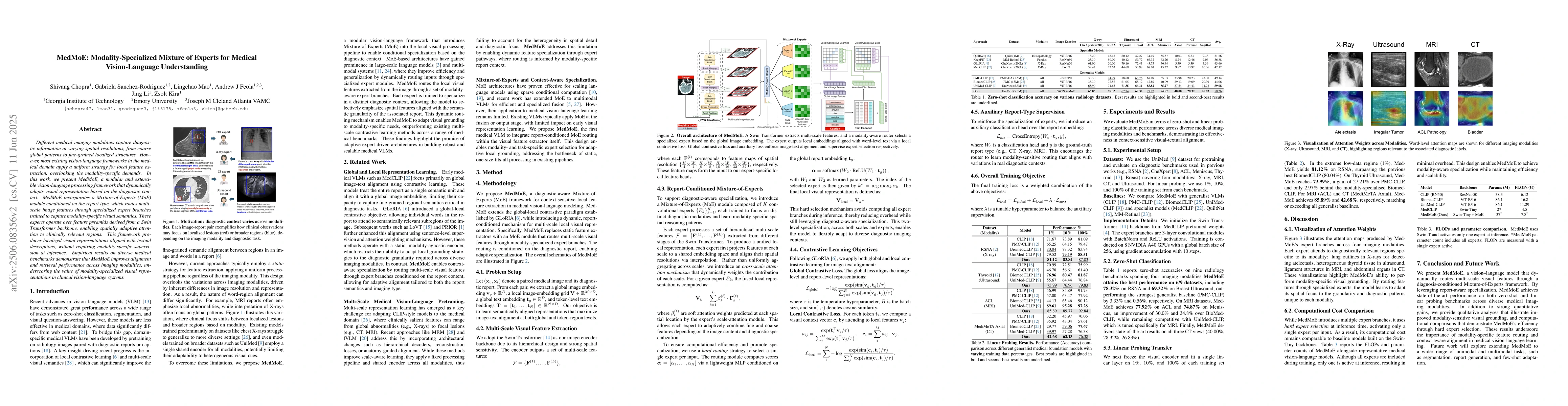 MedMoE improves medical vision-language understanding by adapting visual representations based on diagnostic context and modality-specific demands. It achieves better alignment and retrieval performance across imaging modalities without requiring custom supervision.