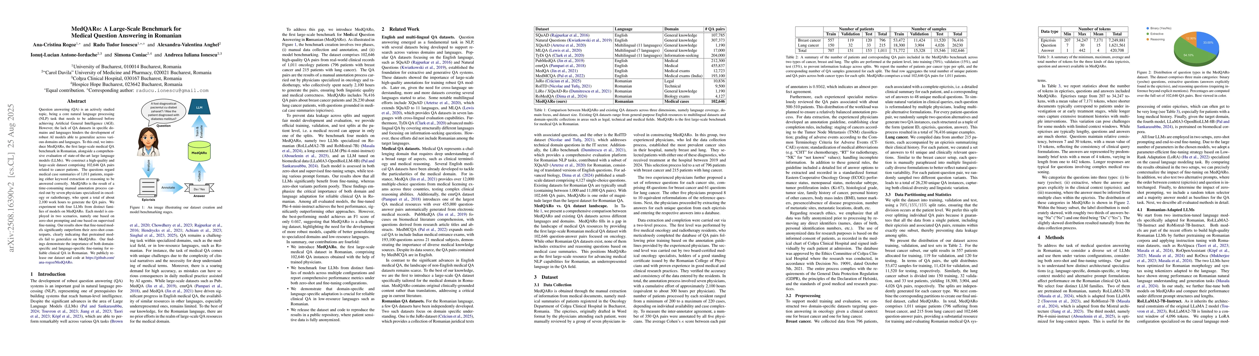 Question answering (QA) is an actively studied topic, being a core natural language processing (NLP) task that needs to be addressed before achieving Artificial General Intelligence (AGI). However, the lack of QA datasets in specific domains and languages hinders the development of robust AI models able to generalize across various domains and languages. To this end, we introduce MedQARo, the first large-scale medical QA benchmark in Romanian, alongside a comprehensive evaluation of state-of-the-art large language models (LLMs). We construct a high-quality and large-scale dataset comprising 102,646 QA pairs related to cancer patients. The questions regard medical case summaries of 1,011 patients, requiring either keyword extraction or reasoning to be answered correctly. MedQARo is the result of a time-consuming manual annotation process carried out by seven physicians specialized in oncology or radiotherapy, who spent a total of about 2,100 work hours to generate the QA pairs. We experiment with four LLMs from distinct families of models on MedQARo. Each model is employed in two scenarios, namely one based on zero-shot prompting and one based on supervised fine-tuning. Our results show that fine-tuned models significantly outperform their zero-shot counterparts, clearly indicating that pretrained models fail to generalize on MedQARo. Our findings demonstrate the importance of both domain-specific and language-specific fine-tuning for reliable clinical QA in Romanian. We publicly release our dataset and code at https://github.com/ana-rogoz/MedQARo.