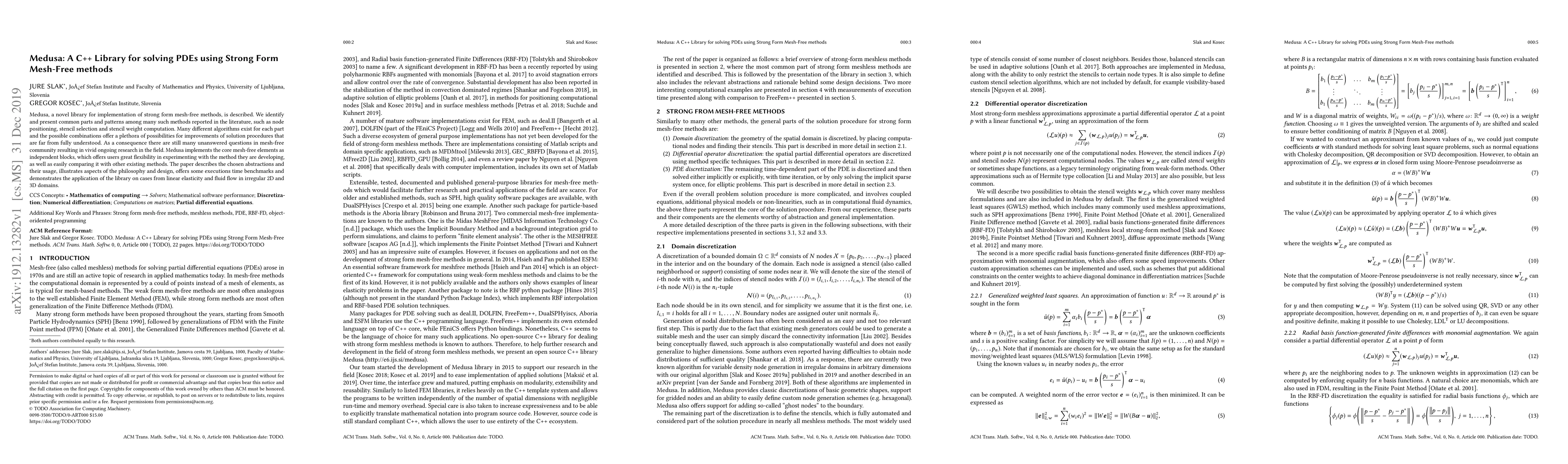 Medusa is a C++ library that implements mesh-free methods for solving partial differential equations (PDEs), allowing users to experiment with different algorithms and compare results.