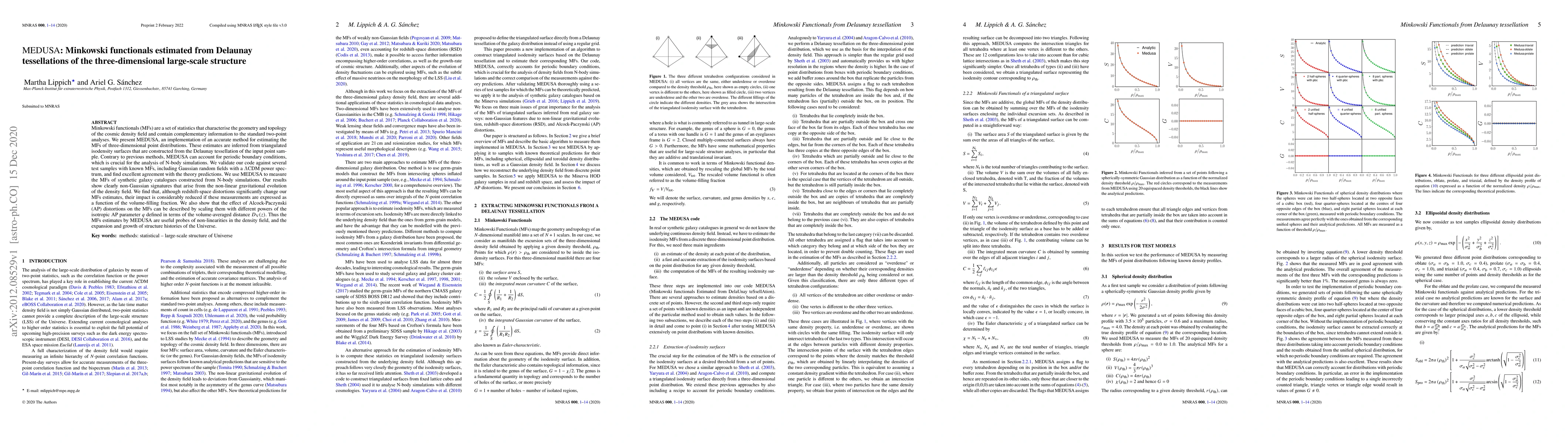 MEDUSA estimates Minkowski functionals from Delaunay tessellations of three-dimensional cosmic density fields, providing accurate measurements that account for periodic boundary conditions. The method reveals non-Gaussian signatures from N-body simulations, highlighting its utility in probing the non-linear evolution and expansion of the Universe's structure.