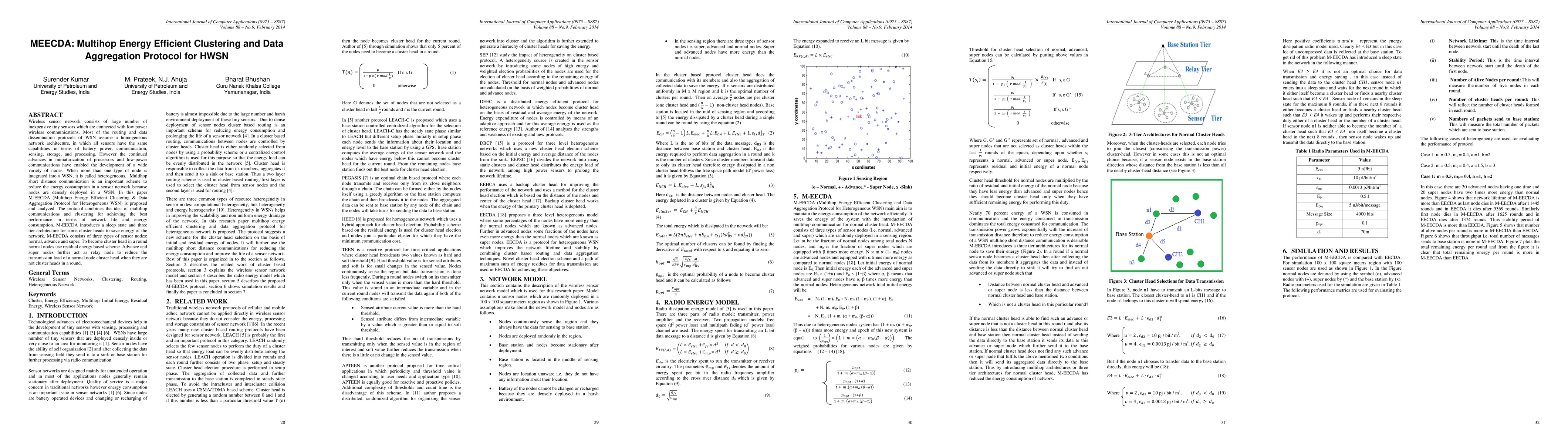Wireless sensor network consists of large number of inexpensive tiny sensors which are connected with low power wireless communications. Most of the routing and data dissemination protocols of WSN assume a homogeneous network architecture, in which all sensors have the same capabilities in terms of battery power, communication, sensing, storage, and processing. However the continued advances in miniaturization of processors and low-power communications have enabled the development of a wide variety of nodes. When more than one type of node is integrated into a WSN, it is called heterogeneous. Multihop short distance communication is an important scheme to reduce the energy consumption in a sensor network because nodes are densely deployed in a WSN. In this paper M-EECDA (Multihop Energy Efficient Clustering & Data Aggregation Protocol for Heterogeneous WSN) is proposed and analyzed. The protocol combines the idea of multihop communications and clustering for achieving the best performance in terms of network life and energy consumption. M-EECDA introduces a sleep state and three tier architecture for some cluster heads to save energy of the network. M-EECDA consists of three types of sensor nodes: normal, advance and super. To become cluster head in a round normal nodes use residual energy based scheme. Advance and super nodes further act as relay node to reduce the transmission load of a normal node cluster head when they are not cluster heads in a round.
