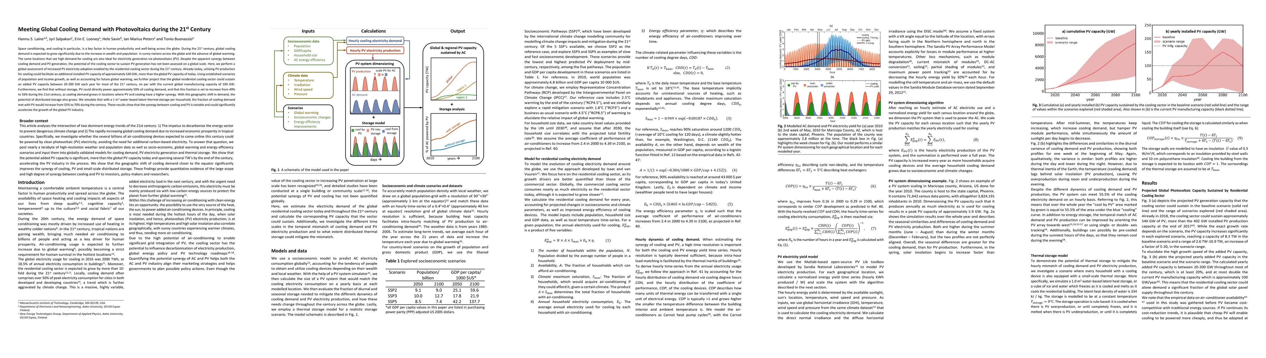 This paper assesses the potential of the global residential cooling sector to support the adoption of photovoltaic (PV) electricity generation throughout the 21st century. It projects that PV could sustain an additional PV capacity of 20-200 GW annually, meeting up to 56% of cooling demand with PV, and potentially increasing to 70% with distributed storage.
