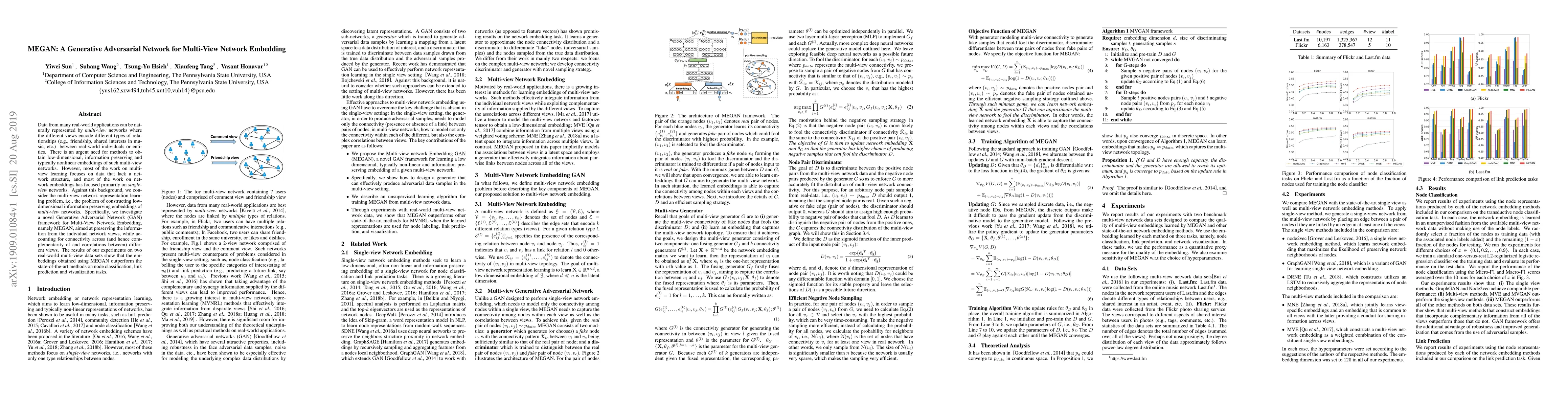 MEGAN is a novel Generative Adversarial Network framework designed for multi-view network embedding, aiming to preserve information across different network views while capturing inter-view relationships. Experiments demonstrate MEGAN's superior performance over state-of-the-art methods in node classification, link prediction, and visualization tasks.