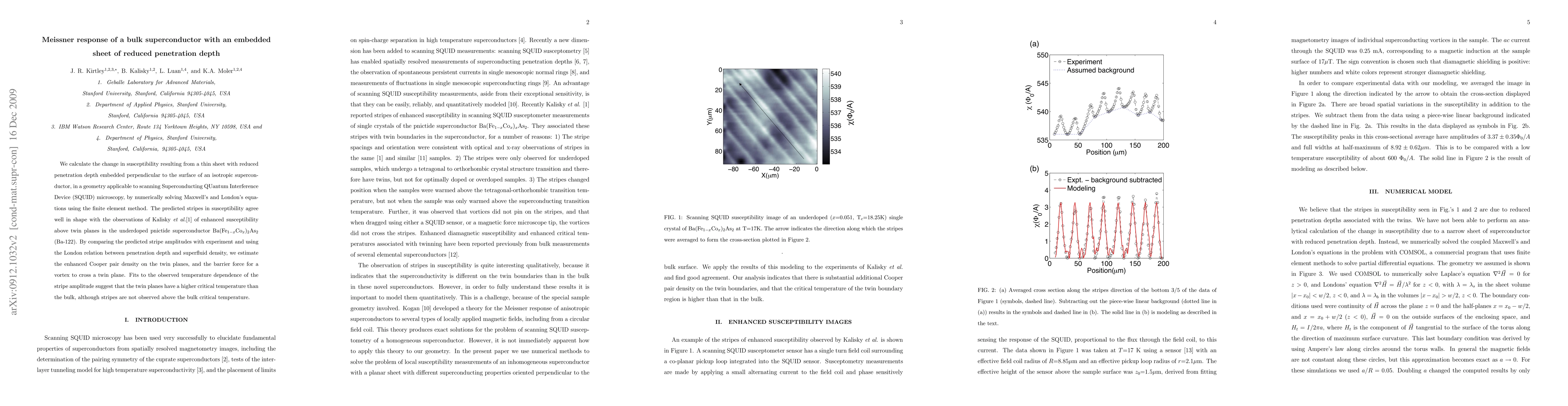 We calculate the change in susceptibility resulting from a thin sheet with reduced penetration depth embedded perpendicular to the surface of an isotropic superconductor, in a geometry applicable to scanning Superconducting QUantum Interference Device (SQUID) microscopy, by numerically solving Maxwell's and London's equations using the finite element method. The predicted stripes in susceptibility agree well in shape with the observations of Kalisky et al. of enhanced susceptibility above twin planes in the underdoped pnictide superconductor Ba(Fe1-xCox)2As2 (Ba-122). By comparing the predicted stripe amplitudes with experiment and using the London relation between penetration depth and superfluid density, we estimate the enhanced Cooper pair density on the twin planes, and the barrier force for a vortex to cross a twin plane. Fits to the observed temperature dependence of the stripe amplitude suggest that the twin planes have a higher critical temperature than the bulk, although stripes are not observed above the bulk critical temperature.