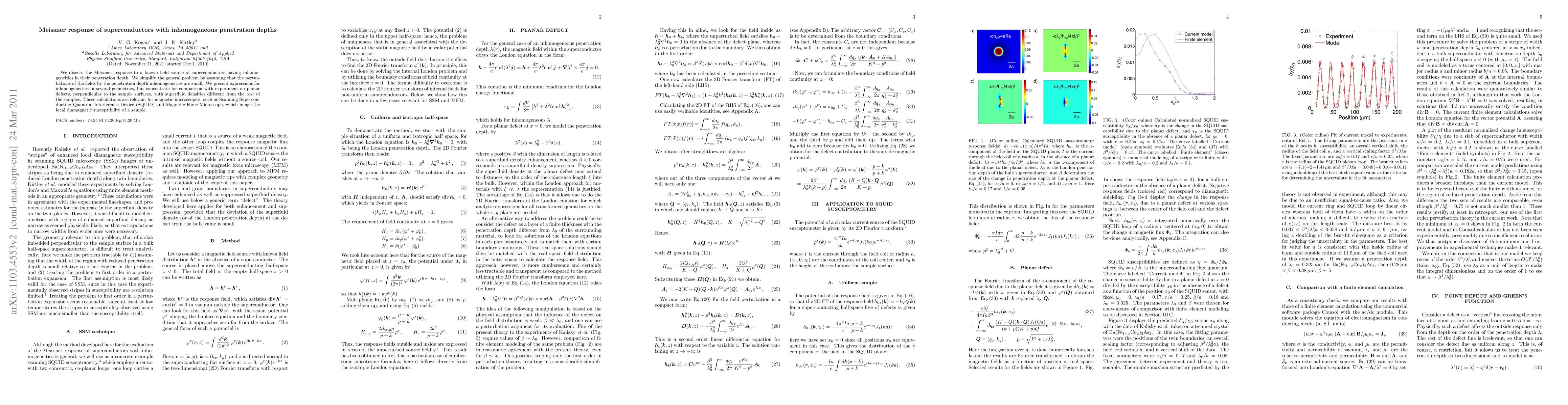 This paper investigates the Meissner response in superconductors with varying penetration depths, focusing on planar defects. It simplifies the problem by assuming small field perturbations and provides expressions for different geometries, emphasizing the relevance for magnetic microscopy techniques like SQUID and Magnetic Force Microscopy.