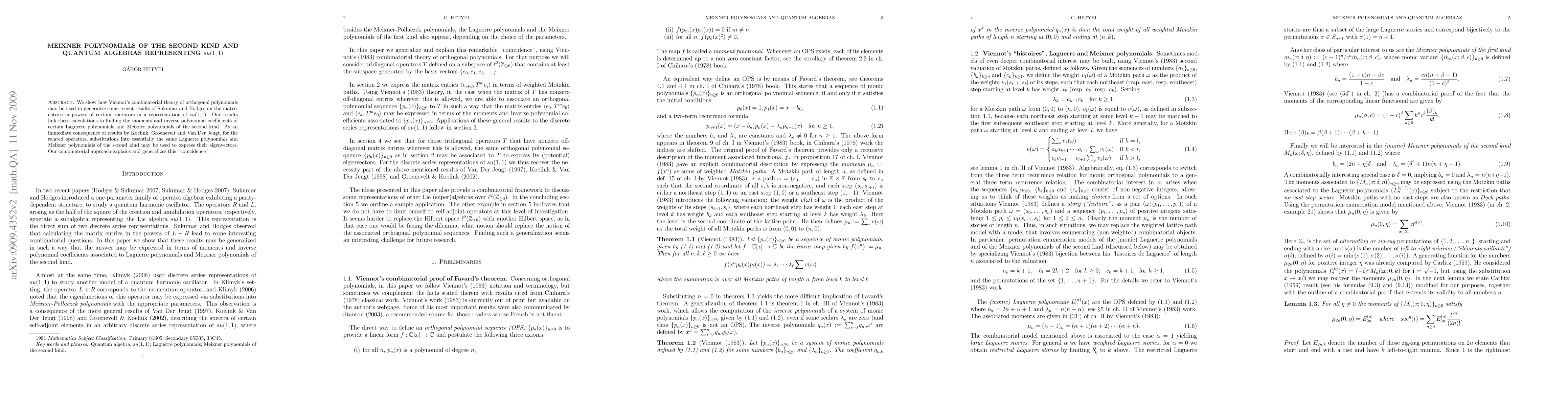 This paper uses Viennot's combinatorial theory of orthogonal polynomials to generalize results on matrix entries in powers of operators in su(1,1) representations. It links the calculations to moments and inverse polynomial coefficients of Laguerre and Meixner polynomials, explaining and generalizing the observed "coincidence" in eigenvector representations.