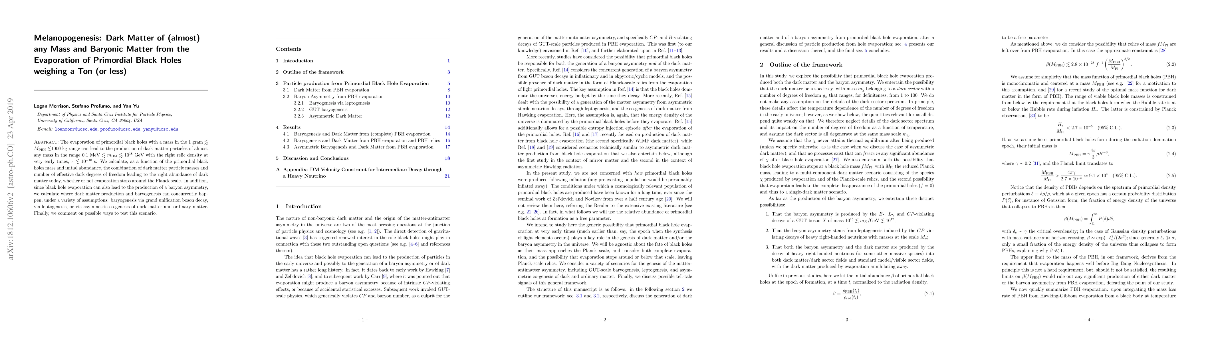 The evaporation of primordial black holes with a mass in the $1\ {\rm gram}\lesssim M_{\rm PBH}\lesssim$1000 kg range can lead to the production of dark matter particles of almost any mass in the range $0.1\ {\rm MeV}\lesssim m_{\rm DM}\lesssim 10^{18}$ GeV with the right relic density at very early times, $\tau\lesssim 10^{-10}$ s. We calculate, as a function of the primordial black holes mass and initial abundance, the combination of dark matter particle masses and number of effective dark degrees of freedom leading to the right abundance of dark matter today, whether or not evaporation stops around the Planck scale. In addition, since black hole evaporation can also lead to the production of a baryon asymmetry, we calculate where dark matter production and baryogenesis can concurrently happen, under a variety of assumptions: baryogenesis via grand unification boson decay, via leptogenesis, or via asymmetric co-genesis of dark matter and ordinary matter. Finally, we comment on possible ways to test this scenario.