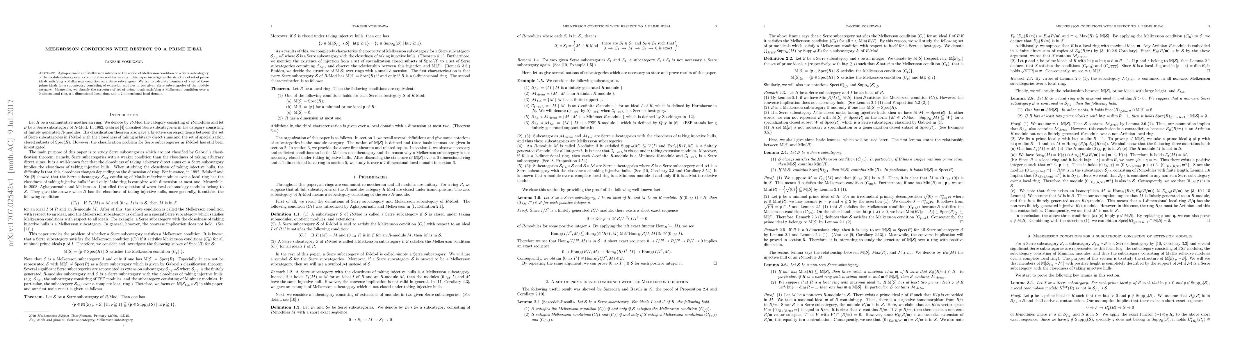 Aghapournahr and Melkersson introduced the notion of Melkersson condition on a Serre subcategory of the module category over a commutative noetherian ring. This paper investigates the structure of set of prime ideals satisfying a Melkersson condition on a Serre subcategory. We try to calculate members of a set of these prime ideals for a subcategory consisting of extension modules in two given Serre subcategories of the module category. Meanwhile, we classify the structure of set of prime ideals satisfying a Melkersson condition over a 0-dimensional ring, a 1-dimensional local ring, and a 2-dimensional local domain.