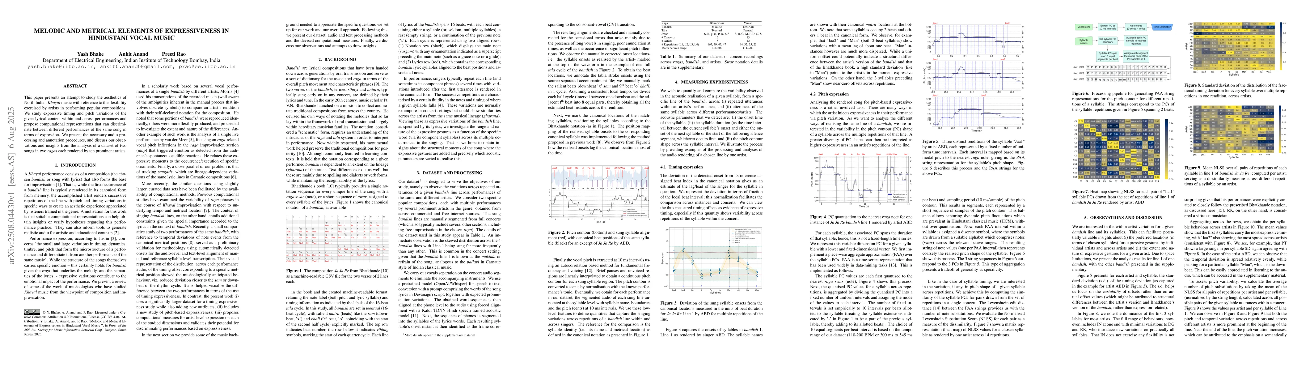 This paper presents an attempt to study the aesthetics of North Indian Khayal music with reference to the flexibility exercised by artists in performing popular compositions. We study expressive timing and pitch variations of the given lyrical content within and across performances and propose computational representations that can discriminate between different performances of the same song in terms of expression. We present the necessary audio processing and annotation procedures, and discuss our observations and insights from the analysis of a dataset of two songs in two ragas each rendered by ten prominent artists.