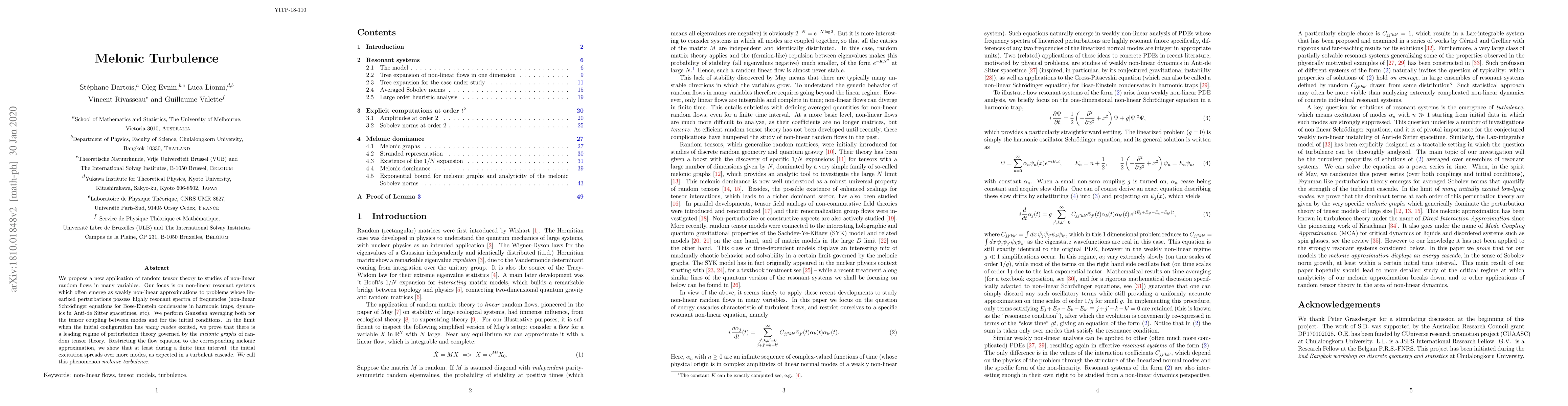 This paper applies random tensor theory to study non-linear random flows, focusing on resonant systems in many variables. It demonstrates that in the presence of many excited modes, a leading perturbation regime governed by melonic graphs leads to a turbulent cascade phenomenon termed "melonic turbulence."