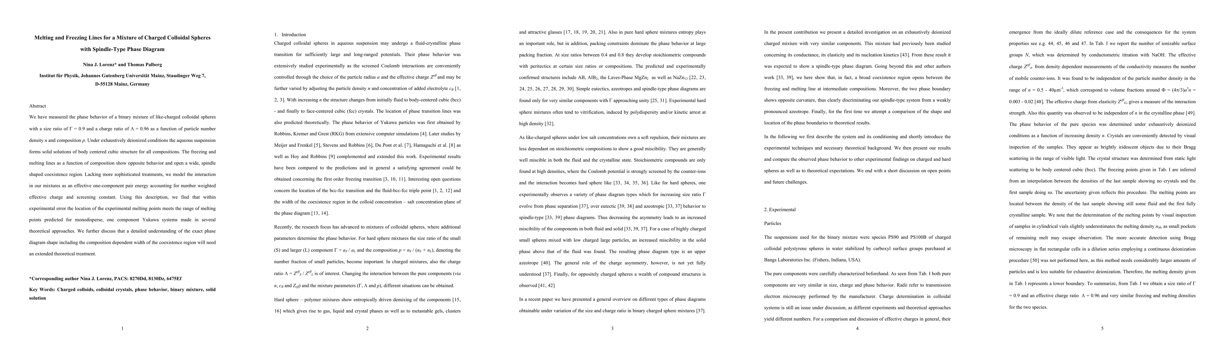 This study investigates the phase behavior of a binary mixture of like-charged colloidal spheres, revealing a spindle-shaped coexistence region for melting and freezing lines. The experimental melting points align with theoretical predictions for monodisperse Yukawa systems, though a more detailed theoretical model is needed to fully understand the composition-dependent width of the coexistence region.