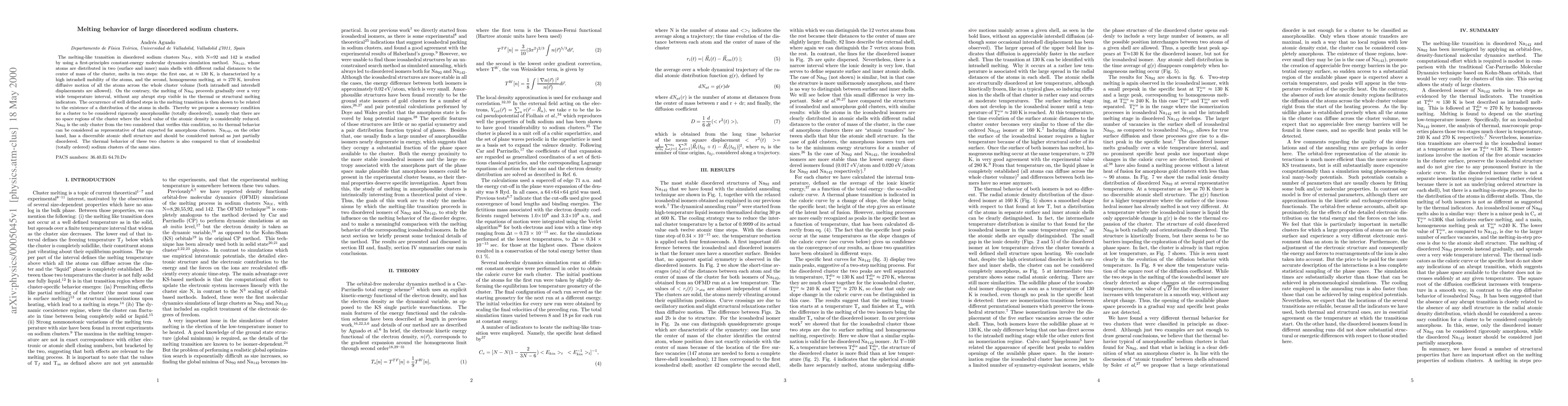 This research provides insights into the melting behavior of disordered sodium clusters, which can inform understanding of amorphous-like structures and their thermal properties.