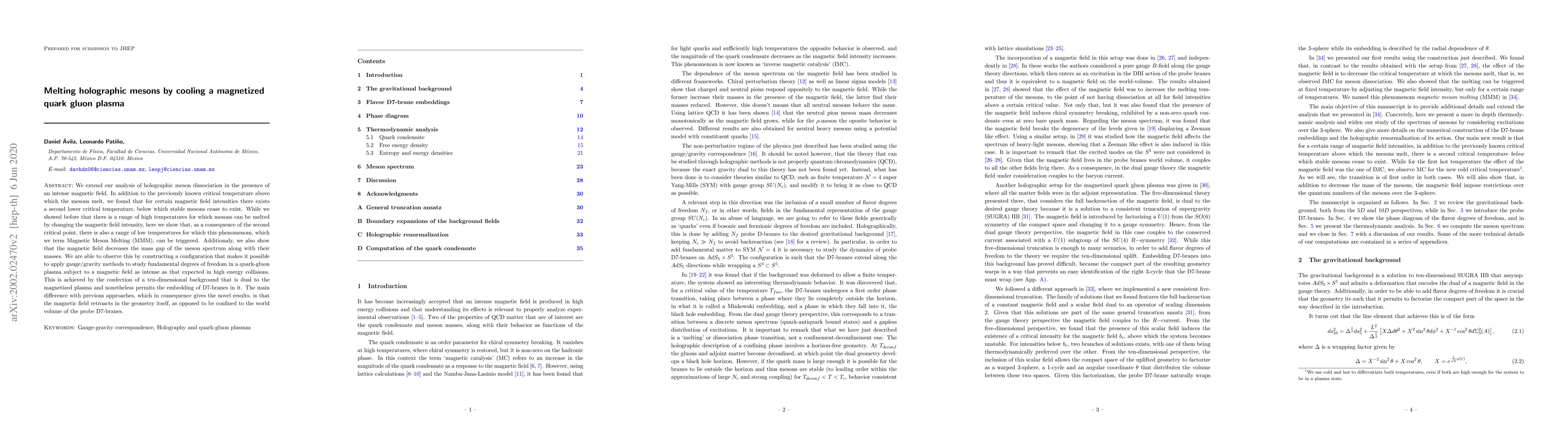 We extend our analysis of holographic meson dissociation in the presence of an intense magnetic field. In addition to the previously known critical temperature above which the mesons melt, we found that for certain magnetic field intensities there exists a second lower critical temperature, below which stable mesons cease to exist. While we showed before that there is a range of high temperatures for which mesons can be melted by changing the magnetic field intensity, here we show that, as a consequence of the second critical point, there is also a range of low temperatures for which this phenomenom, which we term Magnetic Meson Melting (MMM), can be triggered. Additionaly, we also show that the magnetic field decreases the mass gap of the meson spectrum along with their masses. We are able to observe this by constructing a configuration that makes it possible to apply gauge/gravity methods to study fundamental degrees of freedom in a quark-gluon plasma subject to a magnetic field as intense as that expected in high energy collisions. This is achieved by the confection of a ten-dimensional background that is dual to the magnetized plasma and nonetheless permits the embedding of D7-branes in it. The main difference with previous approaches, which in consequence gives the novel results, is that the magnetic field retroacts in the geometry itself, as opposed to be confined to the world volume of the probe D7-branes.