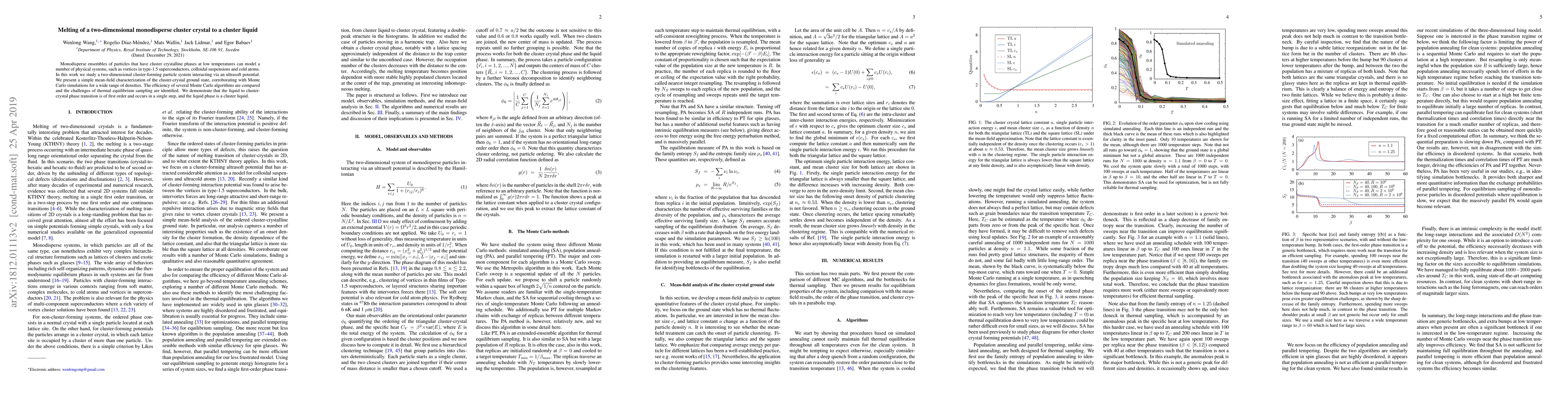 This paper investigates the phase transition of a two-dimensional monodisperse cluster crystal to a cluster liquid using mean-field theory and Monte Carlo simulations. It reveals that the transition is first-order, occurring in a single step, and identifies challenges in achieving thermal equilibrium sampling.