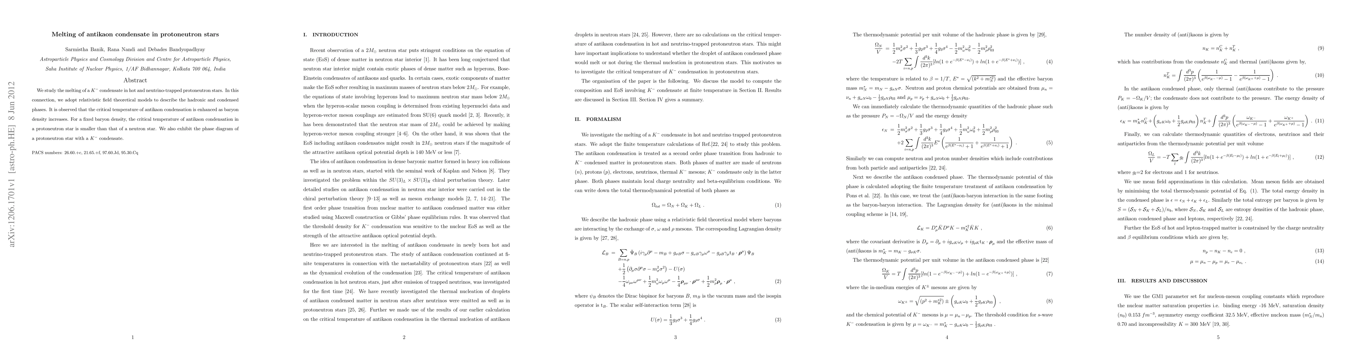 This paper investigates the melting of $K^-$ condensates in protoneutron stars using relativistic field theoretical models, finding that the critical temperature for condensation increases with baryon density. It also reveals that the critical temperature for $K^-$ condensation in protoneutron stars is lower than in neutron stars, and presents a phase diagram for such stars.