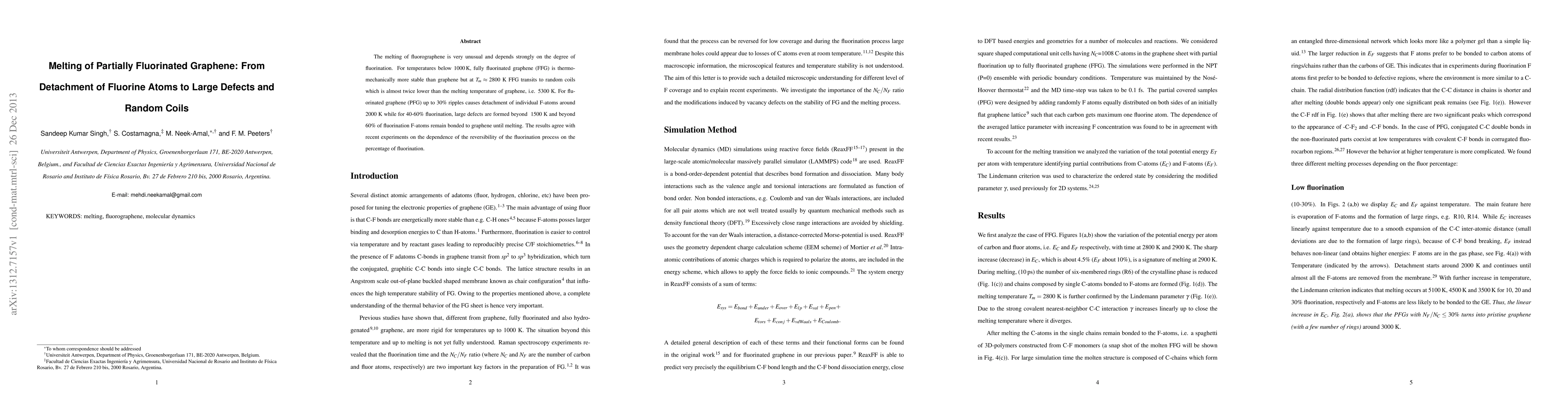 The melting of fluorographene is very unusual and depends strongly on the degree of fluorination. For temperatures below 1000 K, fully fluorinated graphene (FFG) is thermo-mechanically more stable than graphene but at T$_m\approx$2800 K FFG transits to random coils which is almost twice lower than the melting temperature of graphene, i.e. 5300 K. For fluorinated graphene (PFG) up to 30 % ripples causes detachment of individual F-atoms around 2000 K while for 40-60 % fluorination, large defects are formed beyond 1500 K and beyond 60% of fluorination F-atoms remain bonded to graphene until melting. The results agree with recent experiments on the dependence of the reversibility of the fluorination process on the percentage of fluorination.
