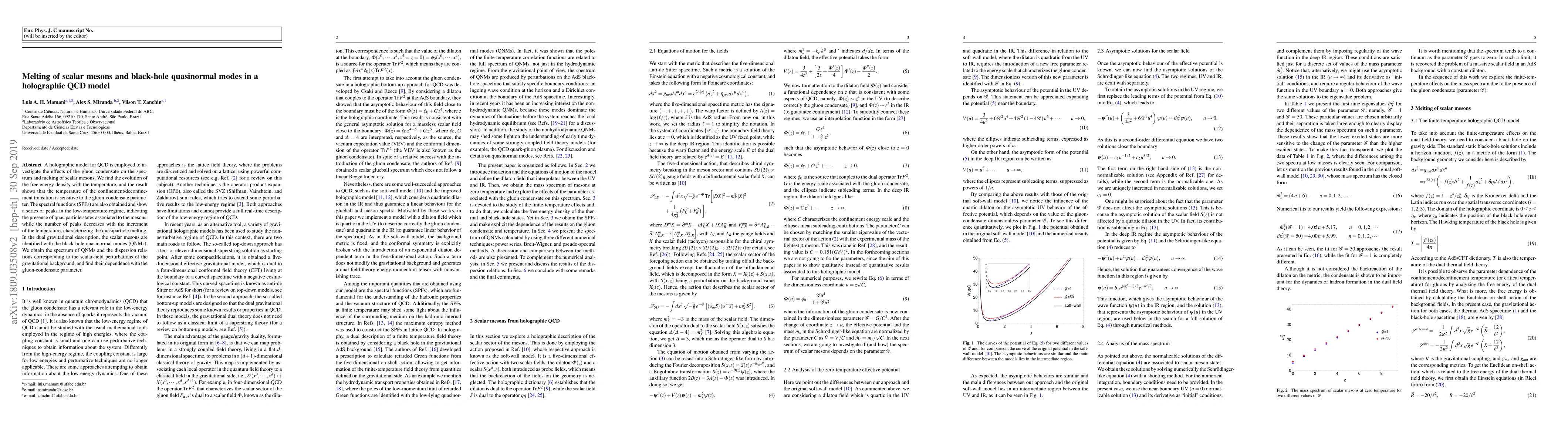 This paper explores a holographic QCD model to study the impact of gluon condensates on the melting of scalar mesons and the quasinormal modes of black holes. It reveals that the temperature of the confinement/deconfinement transition is influenced by the gluon-condensate parameter, and identifies scalar mesons with black-hole quasinormal modes, showing their spectral behavior and dependence on the gluon-condensate parameter.