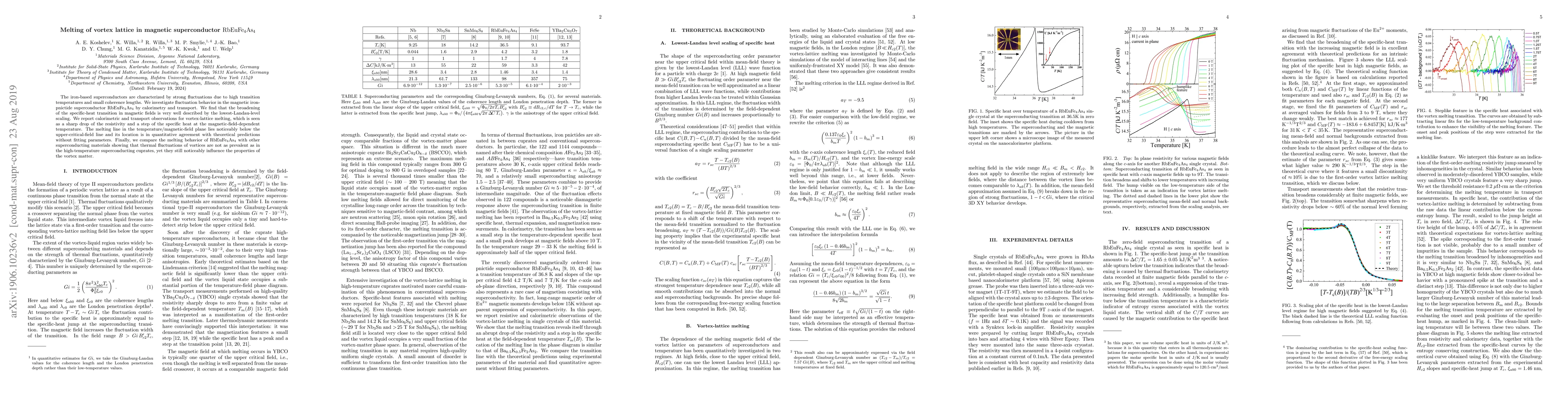 This study investigates the melting behavior of the vortex lattice in the magnetic iron-pnictide superconductor $\mathrm{Rb}\mathrm{Eu}\mathrm{Fe}_{4}\mathrm{As}_{4}$ using calorimetry and transport measurements. The findings reveal that vortex-lattice melting occurs at a temperature below the upper-critical field, consistent with theoretical predictions without adjustable parameters.