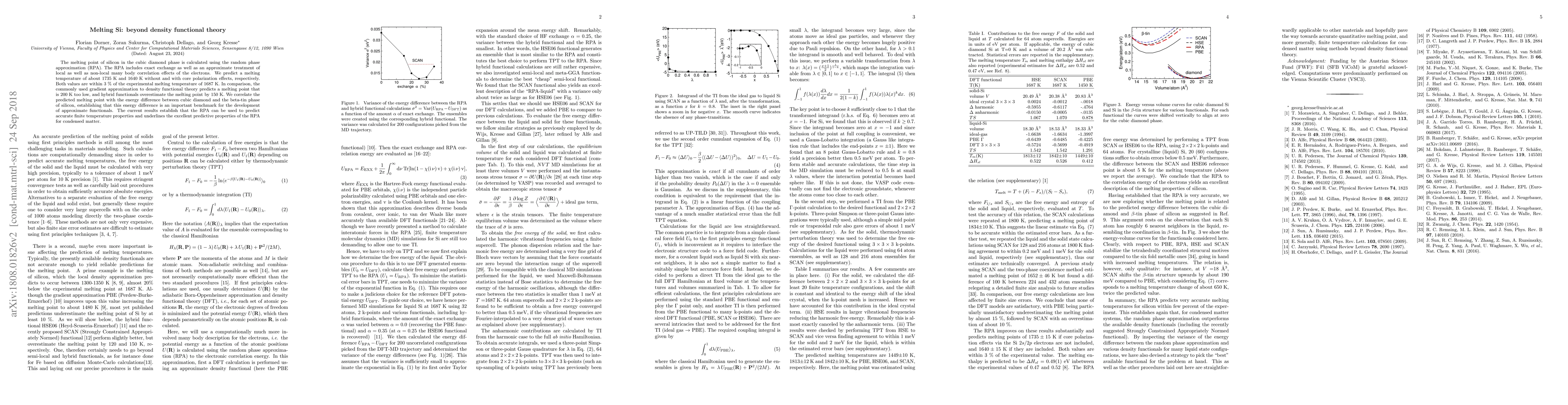 This paper uses the random phase approximation (RPA) to calculate the melting point of silicon, predicting a temperature of 1735 K (within 3% of the experimental value) and 1640 K when core polarization is considered. The RPA's accuracy is highlighted by its superior performance compared to density functional theory approximations.