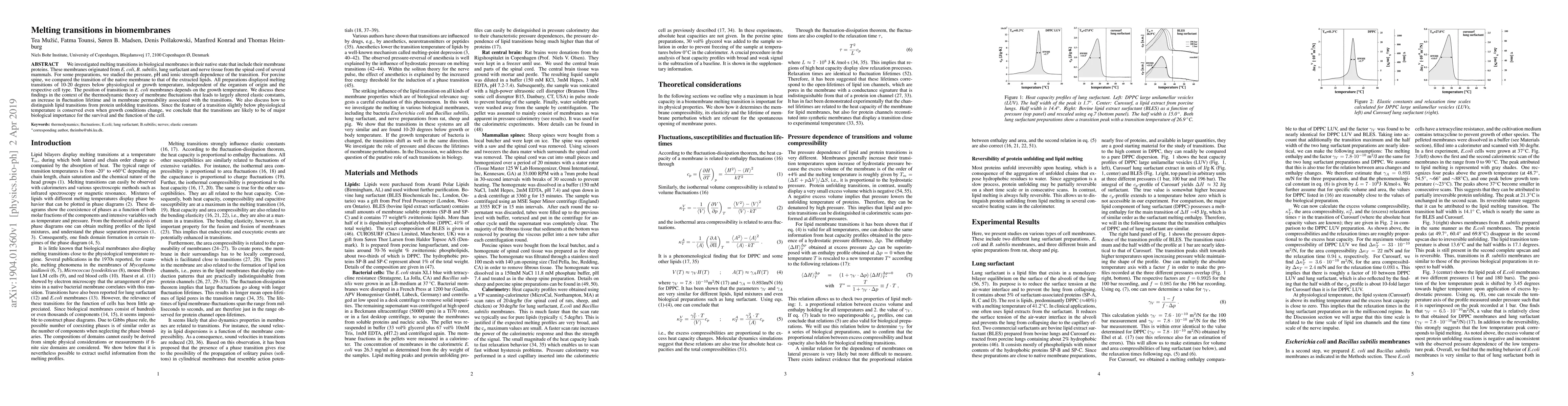 Biomembranes from various organisms show melting transitions at temperatures 10-20 degrees below physiological temperature, indicating potential major biological importance for cell survival and function.