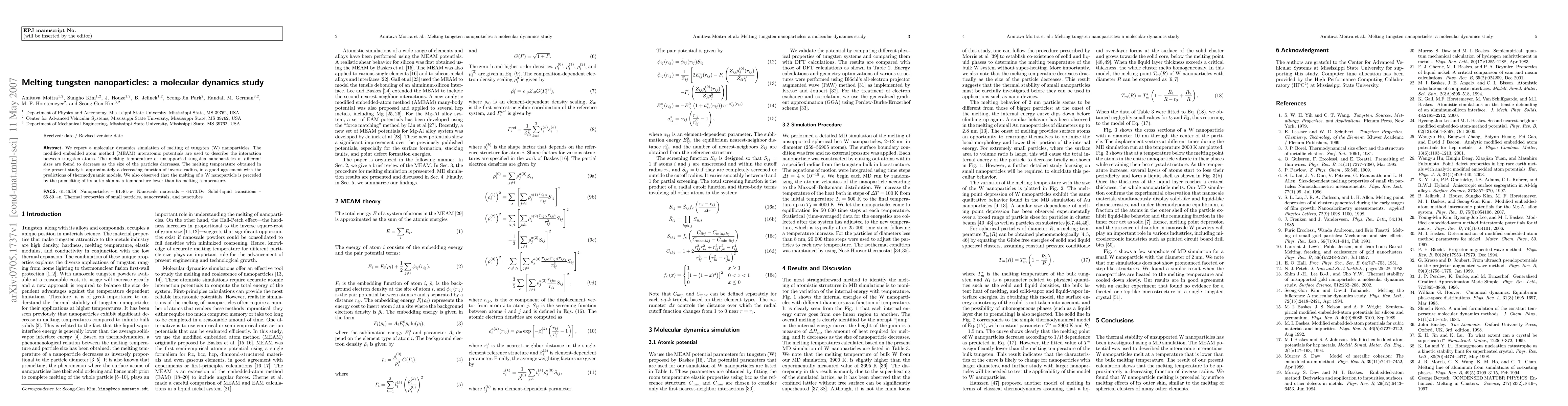 The research used molecular dynamics simulations to study the melting of tungsten nanoparticles.