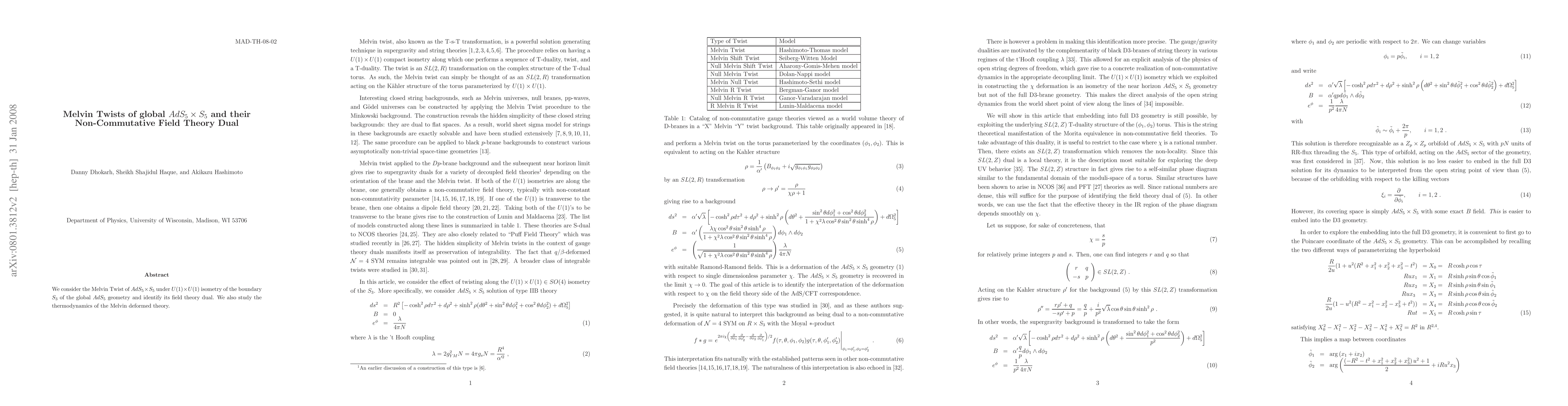 The paper presents a detailed analysis of Melvin twists on AdS_5 × S_5, identifying their field theory duals, and demonstrating the non-commutative structure of the resulting gauge theories.