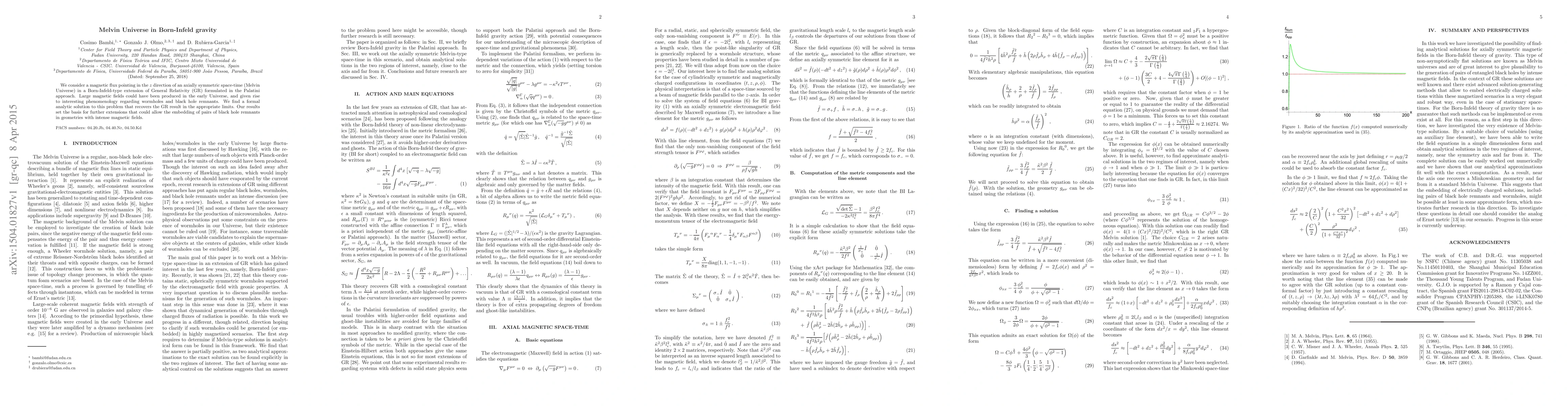 We consider a magnetic flux pointing in the $z$ direction of an axially symmetric space-time (Melvin Universe) in a Born-Infeld-type extension of General Relativity (GR) formulated in the Palatini approach. Large magnetic fields could have been produced in the early Universe, and given rise to interesting phenomenology regarding wormholes and black hole remnants. We find a formal analytic solution to this problem that recovers the GR result in the appropriate limits. Our results set the basis for further extensions that could allow the embedding of pairs of black hole remnants in geometries with intense magnetic fields.