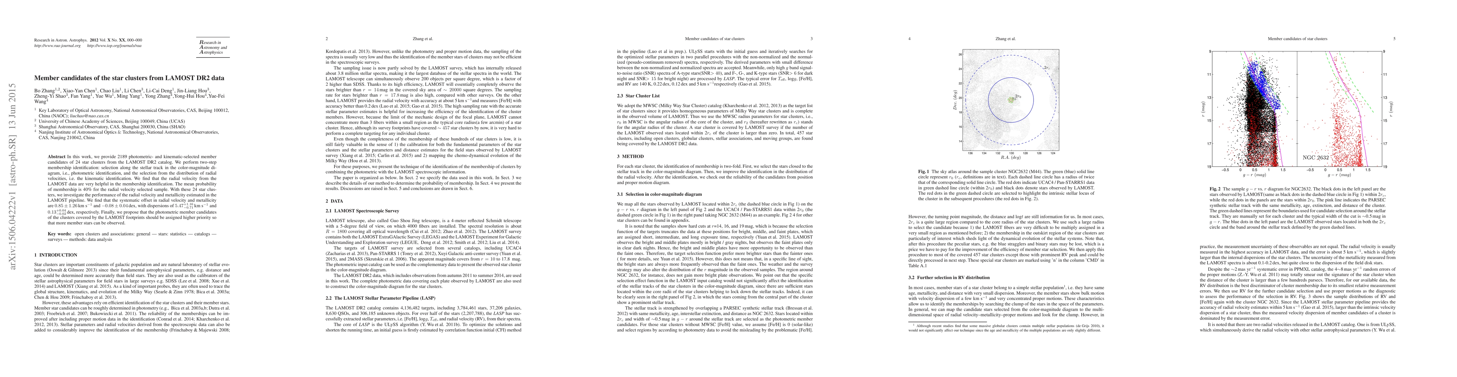 This paper identifies 2189 member candidates for 24 star clusters using LAMOST DR2 data, employing both photometric and kinematic methods. The study finds that LAMOST radial velocity data significantly aids in membership identification, with a mean membership probability of 40%.