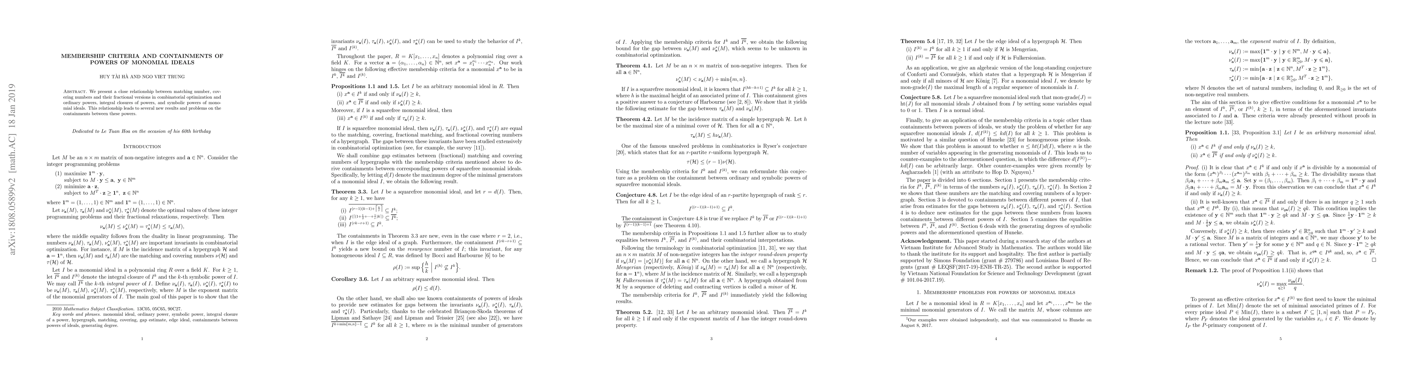 This paper explores the connection between combinatorial optimization concepts like matching and covering numbers and algebraic properties of monomial ideals, leading to new insights on the containments among their various powers.