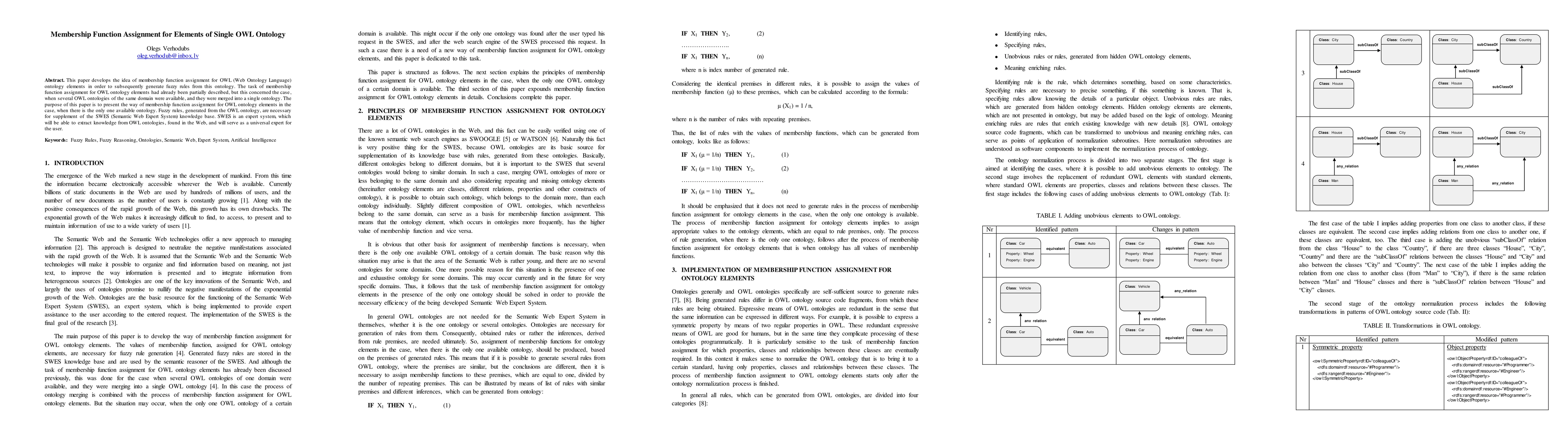 This paper proposes a method for assigning membership functions to elements within a single OWL ontology to generate fuzzy rules, enhancing the knowledge base of the SWES expert system for extracting knowledge from web-based ontologies.