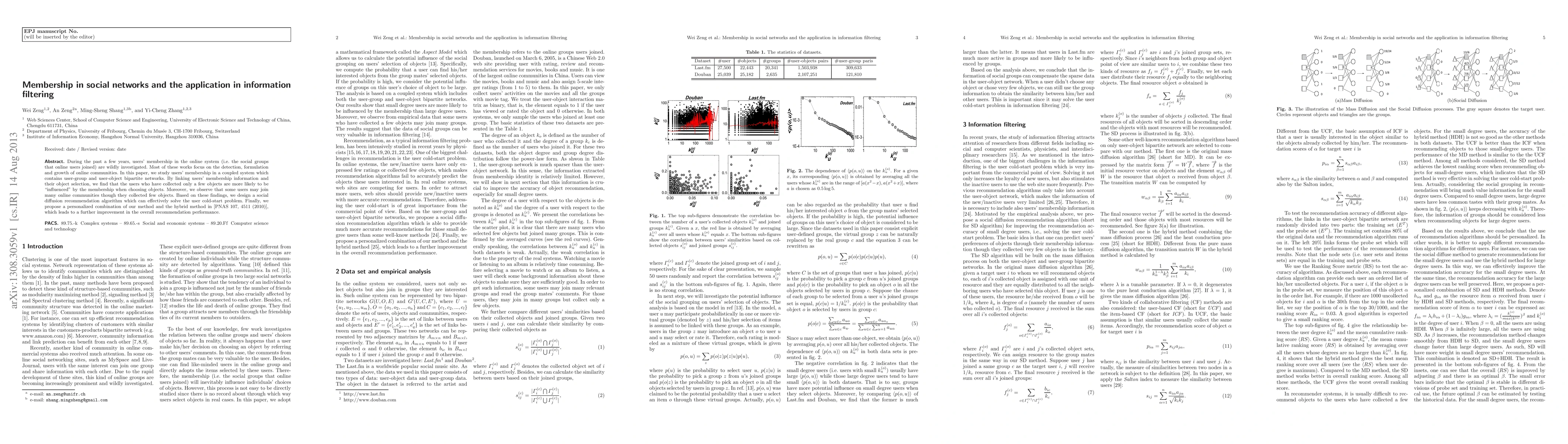 A study found that users who join multiple online communities but collect few objects are more likely to be influenced by membership when choosing objects. The research proposes a recommendation algorithm to address the user cold-start problem in information filtering.