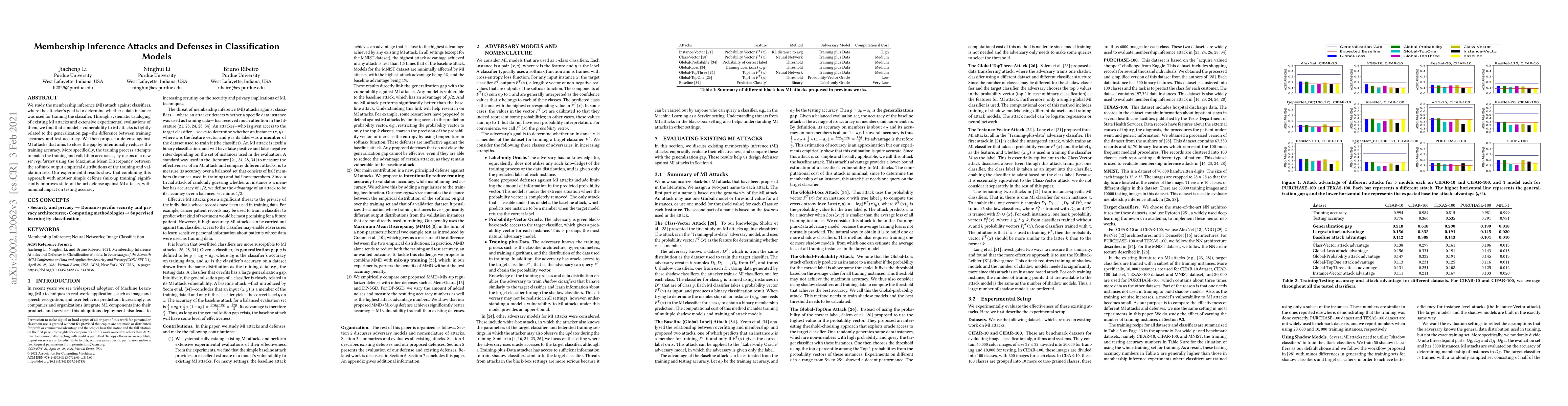 Researchers find that machine learning models are vulnerable to membership inference attacks when their training and testing accuracy differ significantly. They propose a defense method using set regularization and mix-up training to improve the model's security with minimal impact on performance.