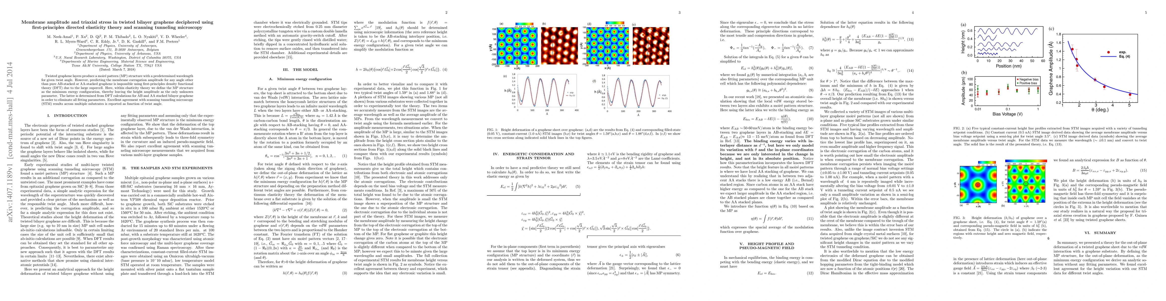 This paper uses first-principles directed elasticity theory to predict the membrane corrugation amplitude in twisted bilayer graphene, overcoming the limitations of traditional DFT. The method accurately determines the amplitude from DFT calculations for AB and AA configurations, validated by scanning tunneling microscopy results.