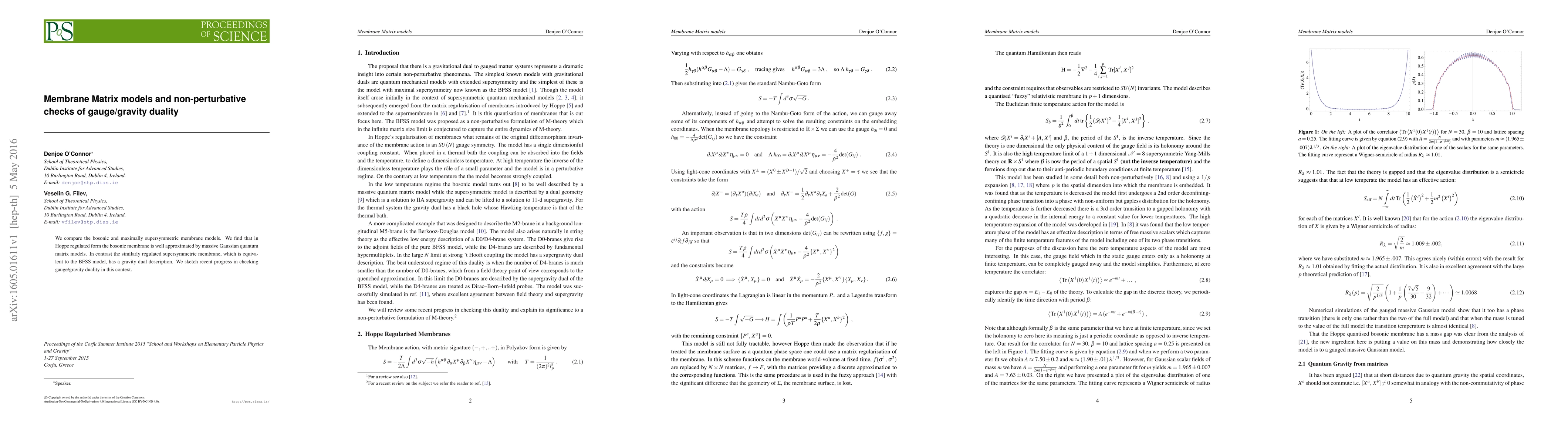 This paper compares bosonic and maximally supersymmetric membrane models, finding that the bosonic version approximates to massive Gaussian quantum matrix models, while the supersymmetric version, equivalent to the BFSS model, has a gravity dual. It also outlines recent advancements in verifying gauge/gravity duality in this framework.