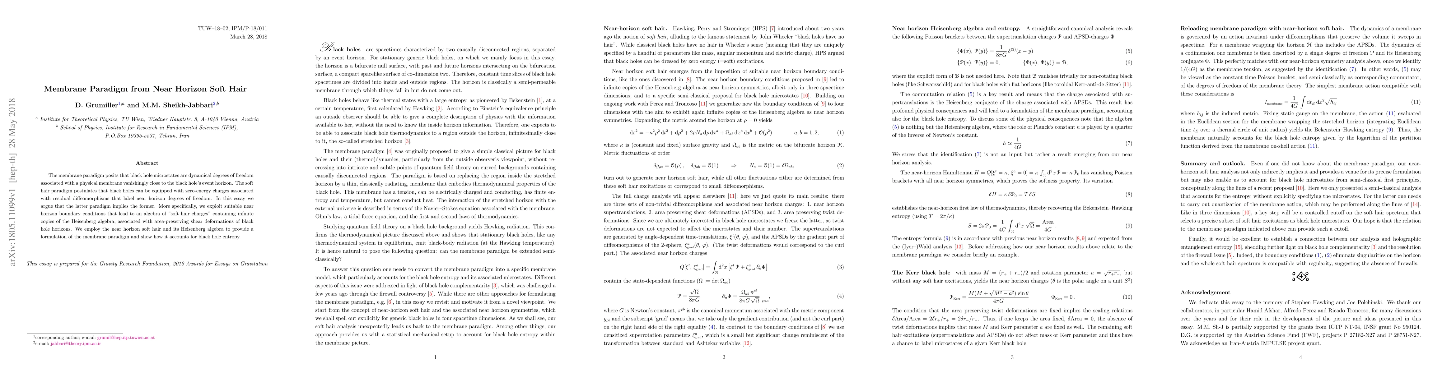 The membrane paradigm posits that black hole microstates are dynamical degrees of freedom associated with a physical membrane vanishingly close to the black hole's event horizon. The soft hair paradigm postulates that black holes can be equipped with zero-energy charges associated with residual diffeomorphisms that label near horizon degrees of freedom. In this essay we argue that the latter paradigm implies the former. More specifically, we exploit suitable near horizon boundary conditions that lead to an algebra of `soft hair charges' containing infinite copies of the Heisenberg algebra, associated with area-preserving shear deformations of black hole horizons. We employ the near horizon soft hair and its Heisenberg algebra to provide a formulation of the membrane paradigm and show how it accounts for black hole entropy.