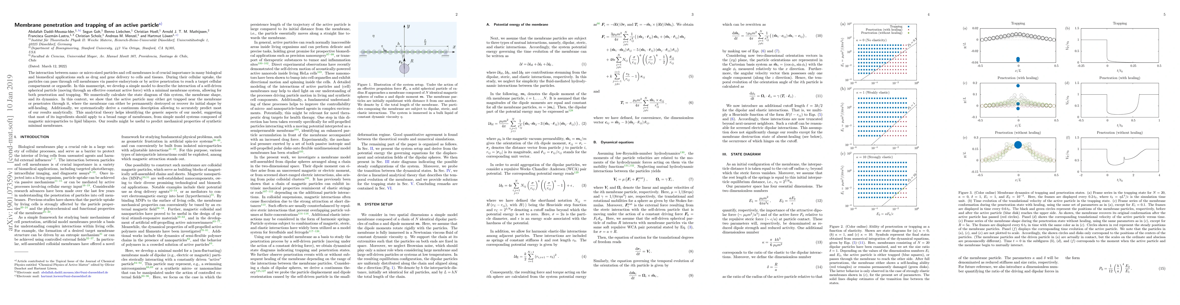 This research develops a model to describe the interaction of self-driven particles with cell membranes, revealing that particles can either be trapped or penetrate the membrane, which may permanently change or self-heal. The study combines numerical calculations and analytical theory, suggesting broad applicability to various membrane systems and potential use in predicting mechanical properties of synthetic membranes.