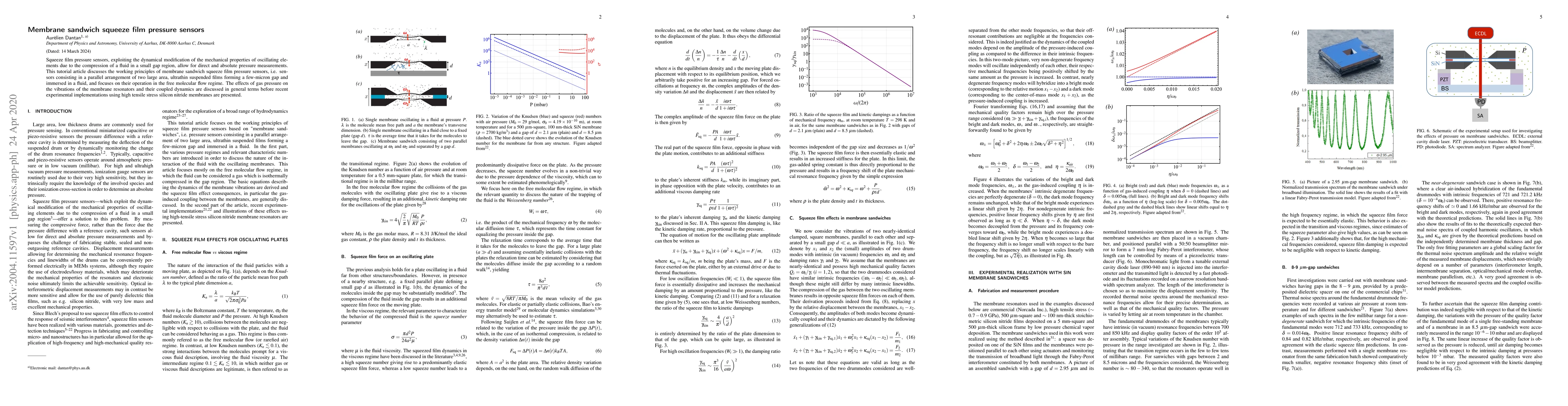 The paper presents a detailed analysis of squeeze film pressure sensors based on membrane sandwiches, focusing on their operation in the free molecular flow regime and providing experimental validation using high tensile stress silicon nitride membranes.