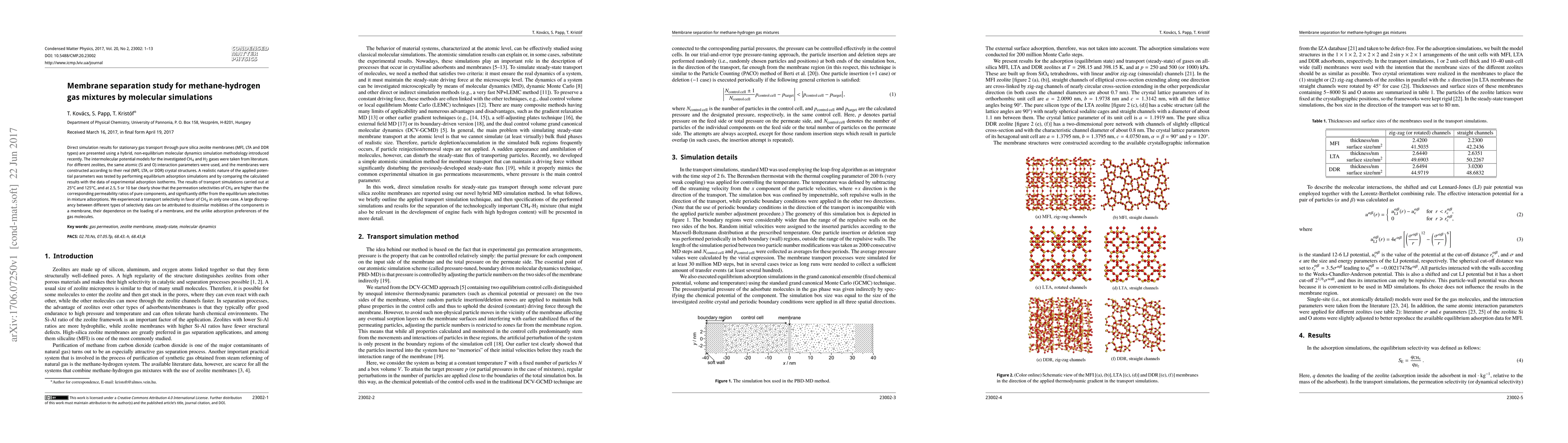 Researchers used molecular simulations to study methane-hydrogen gas mixtures passing through silica zeolite membranes, finding that the mixture's selectivity favors methane over hydrogen in some cases, with differences attributed to component mobility and adsorption preferences.