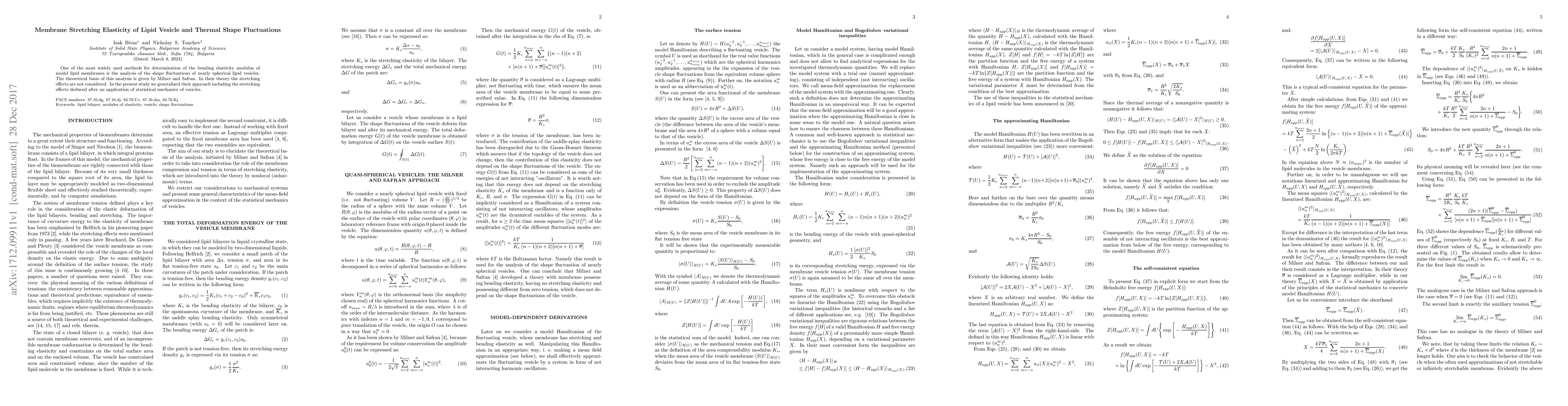 This paper generalizes the theoretical basis for determining the bending elasticity of lipid membranes by incorporating membrane stretching effects, previously neglected, using statistical mechanics to analyze thermal shape fluctuations in lipid vesicles.