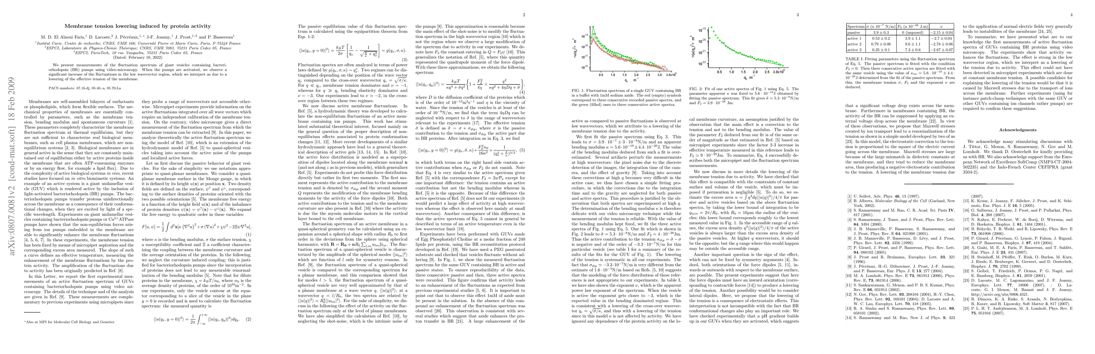 Measuring giant vesicles containing bacteriorhodopsin reveals that activated pumps increase membrane fluctuations, indicating a lowering of the effective tension of the membrane.