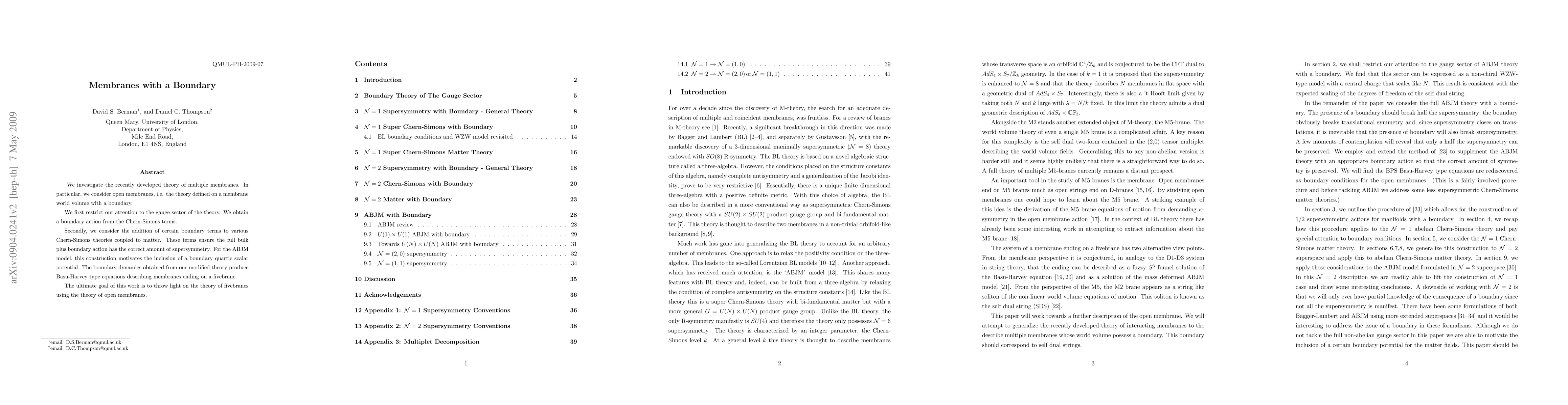 We investigate the recently developed theory of multiple membranes. In particular, we consider open membranes, i.e. the theory defined on a membrane world volume with a boundary. We first restrict our attention to the gauge sector of the theory. We obtain a boundary action from the Chern-Simons terms. Secondly, we consider the addition of certain boundary terms to various Chern-Simons theories coupled to matter. These terms ensure the full bulk plus boundary action has the correct amount of supersymmetry. For the ABJM model, this construction motivates the inclusion of a boundary quartic scalar potential. The boundary dynamics obtained from our modified theory produce Basu-Harvey type equations describing membranes ending on a fivebrane. The ultimate goal of this work is to throw light on the theory of fivebranes using the theory of open membranes.