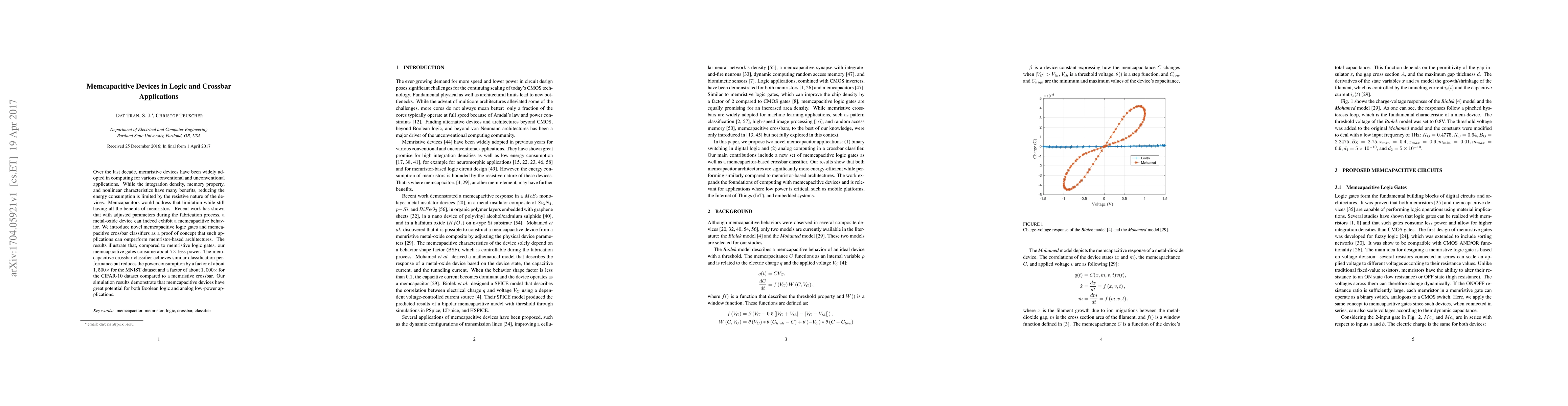 This paper explores the potential of memcapacitive devices over memristive ones for logic and crossbar applications, demonstrating significant reductions in power consumption while maintaining performance. Memcapacitive logic gates consume about 7x less power than memristive ones, and memcapacitive crossbar classifiers reduce power consumption by factors of 1,500x and 1,000x for MNIST and CIFAR-10 datasets respectively.