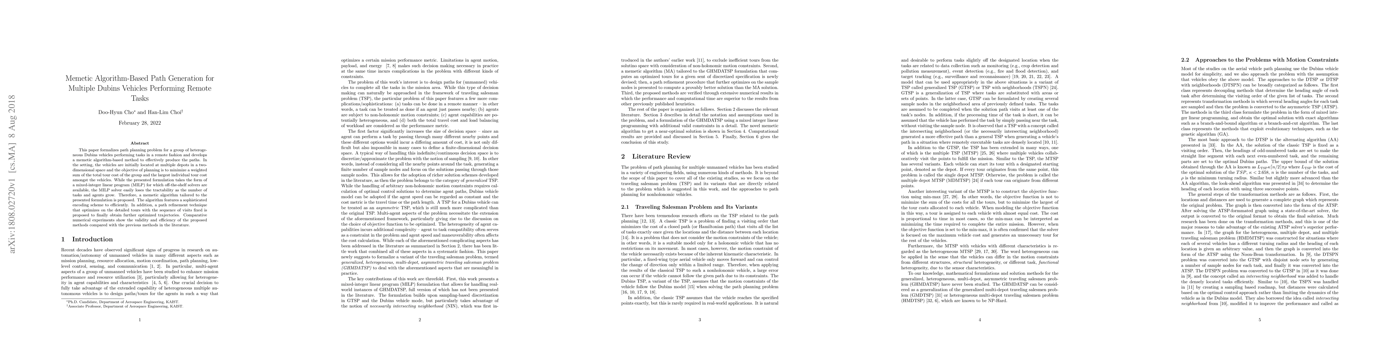 This paper introduces a memetic algorithm to tackle the path planning problem for multiple Dubins vehicles performing remote tasks. The algorithm aims to minimize the total and individual tour costs, outperforming previous methods in efficiency and validity, as demonstrated through comparative numerical experiments.
