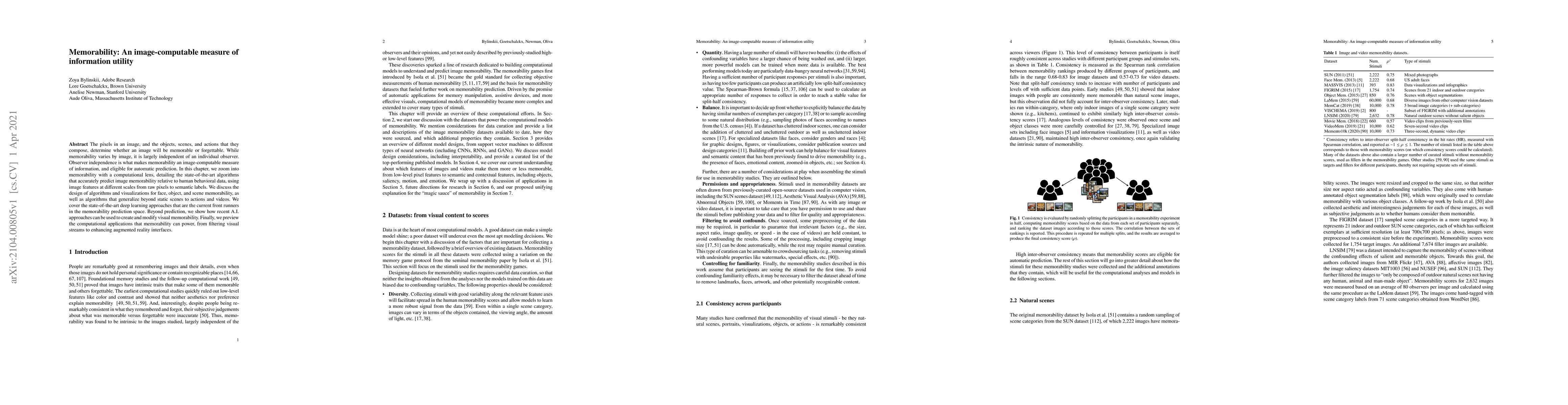 This paper explores a computational measure of image memorability, detailing algorithms that predict how memorable an image is based on its features, independent of individual observers. It discusses advanced deep learning techniques and their applications in enhancing visual content and augmented reality.