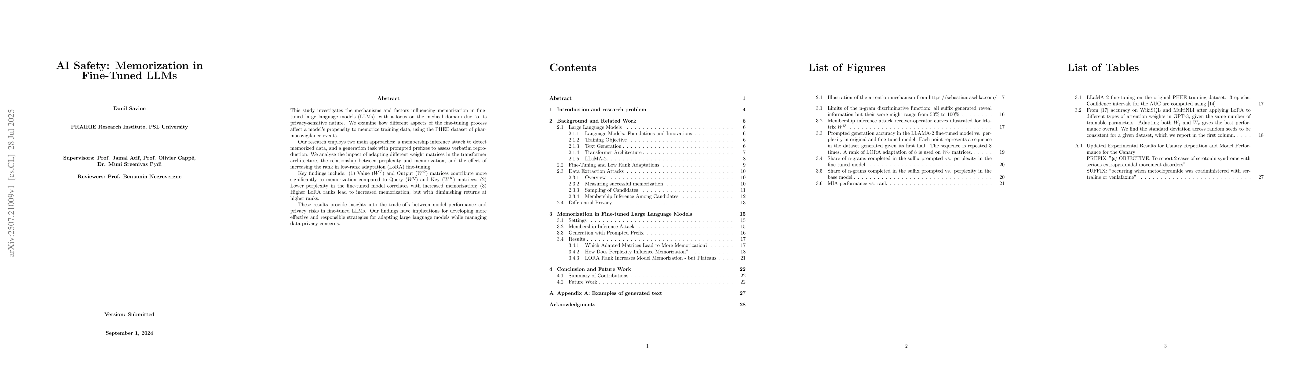 This study investigates the mechanisms and factors influencing memorization in fine-tuned large language models (LLMs), with a focus on the medical domain due to its privacy-sensitive nature. We examine how different aspects of the fine-tuning process affect a model's propensity to memorize training data, using the PHEE dataset of pharmacovigilance events. Our research employs two main approaches: a membership inference attack to detect memorized data, and a generation task with prompted prefixes to assess verbatim reproduction. We analyze the impact of adapting different weight matrices in the transformer architecture, the relationship between perplexity and memorization, and the effect of increasing the rank in low-rank adaptation (LoRA) fine-tuning. Key findings include: (1) Value and Output matrices contribute more significantly to memorization compared to Query and Key matrices; (2) Lower perplexity in the fine-tuned model correlates with increased memorization; (3) Higher LoRA ranks lead to increased memorization, but with diminishing returns at higher ranks. These results provide insights into the trade-offs between model performance and privacy risks in fine-tuned LLMs. Our findings have implications for developing more effective and responsible strategies for adapting large language models while managing data privacy concerns.