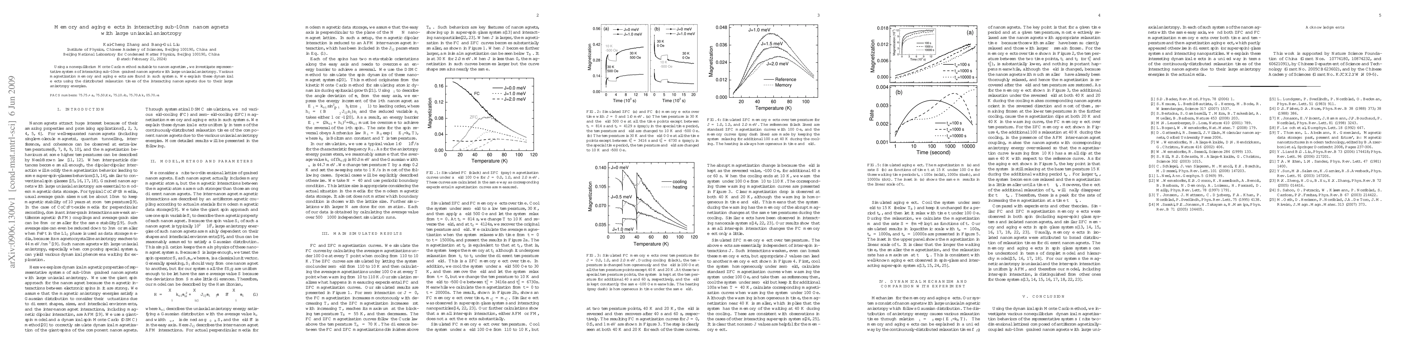 Using a nonequilibrium Monte Carlo method suitable to nanomagnetism, we investigate representative systems of interacting sub-10nm grained nanomagnets with large uniaxial anisotropy. Various magnetization memory and aging effects are found in such systems. We explain these dynamical effects using the distributed relaxation times of the interacting nanomagnets due to their large anisotropy energies.